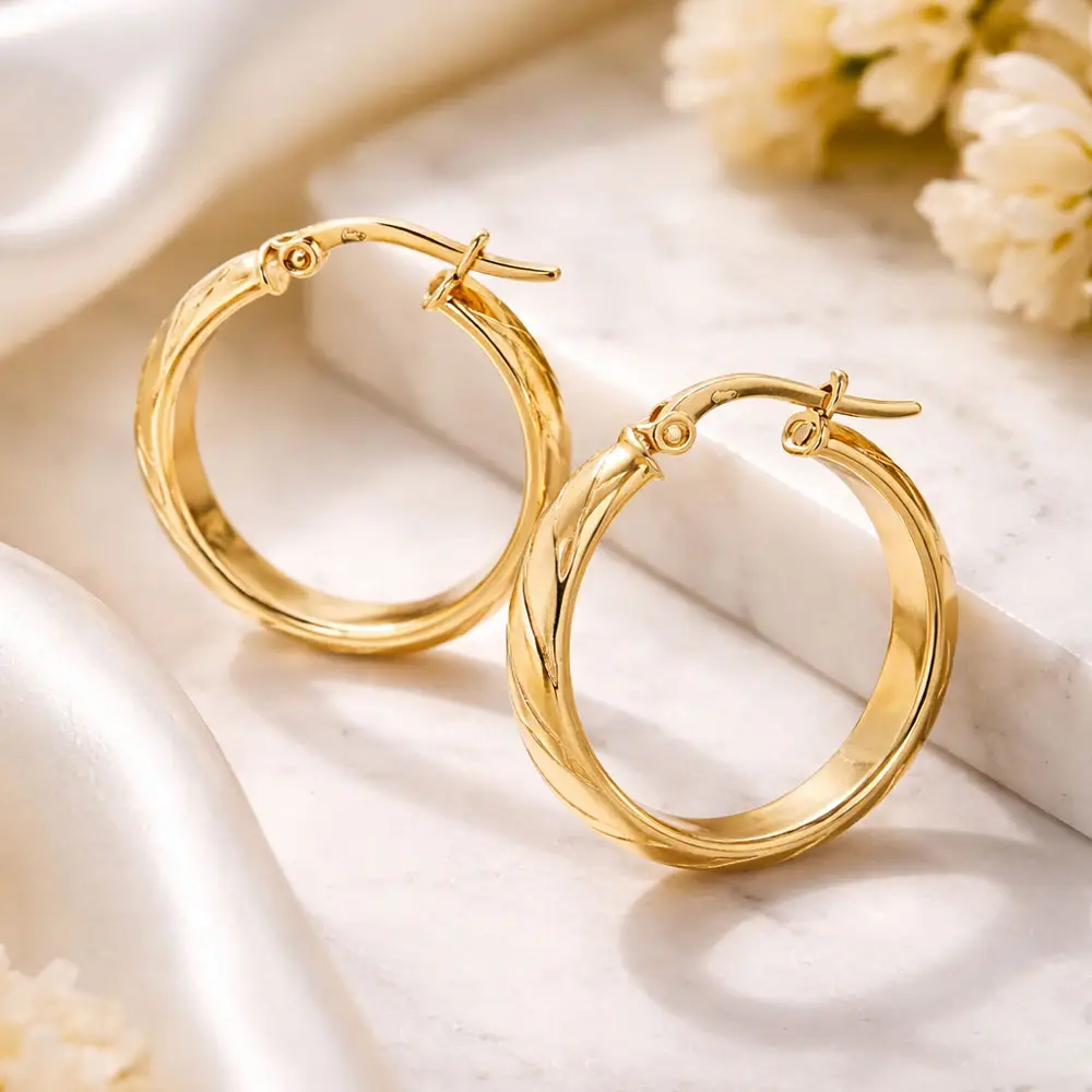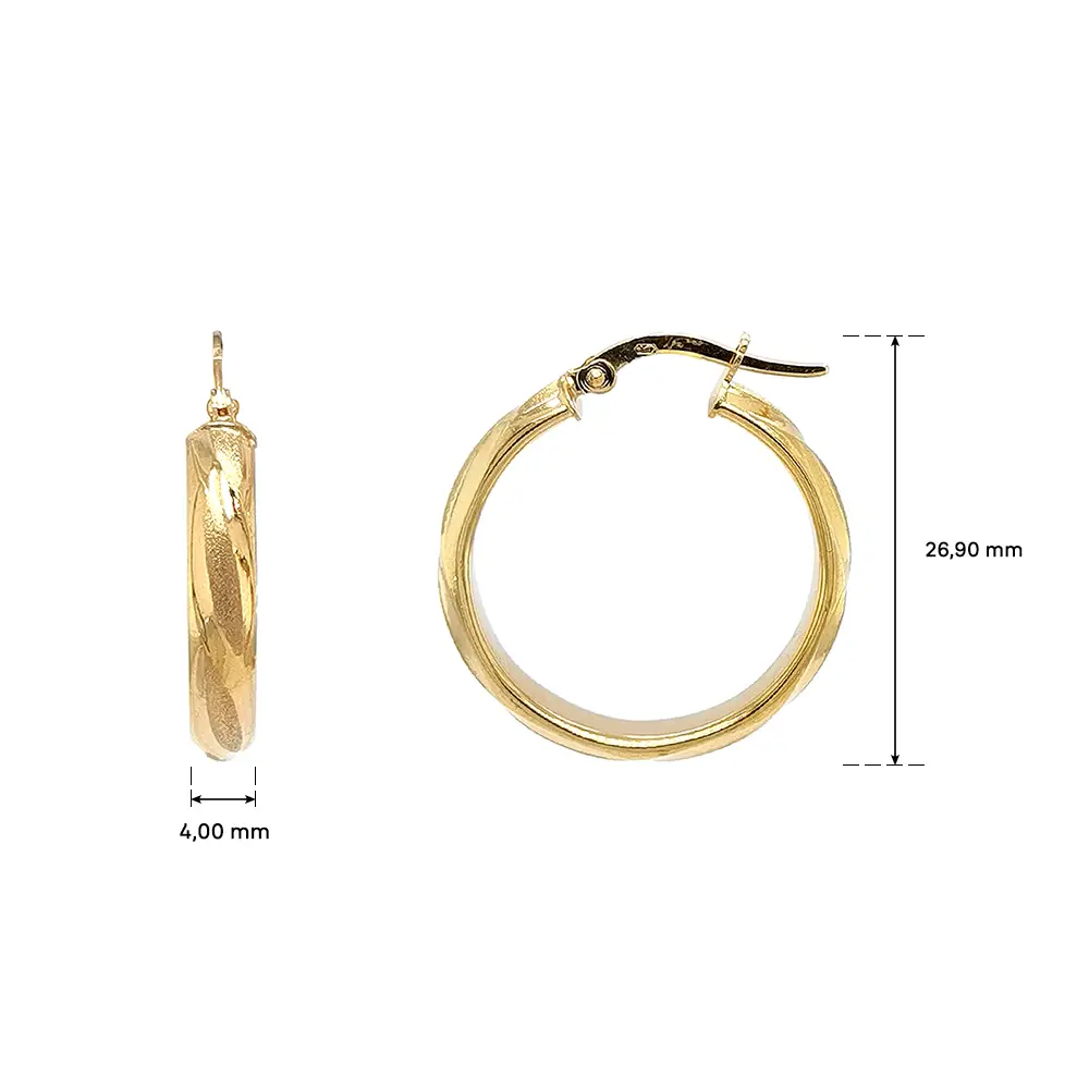Надёжная застёжка обеспечивает комфортное и безопасное ношение в течение всего дня. Диаметр около 26,90 мм и ширина профиля примерно 4,00 мм делают серьги выразительными, но гармоничными — идеальными как для повседневного, так и для элегантного образа.