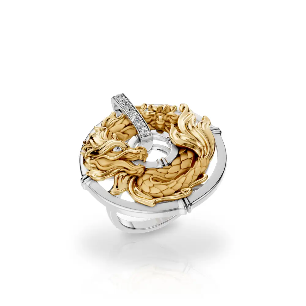 Кольцо Carrera y Carrera New Shanghai Medium от Carrera y Carrera сочетает изысканное исполнение и элегантный дизайн. Изготовлено из желтого и белого золота 18 карат, отличается гармоничным сочетанием и современным стилем. Дизайн вдохновлен восточной символикой.
