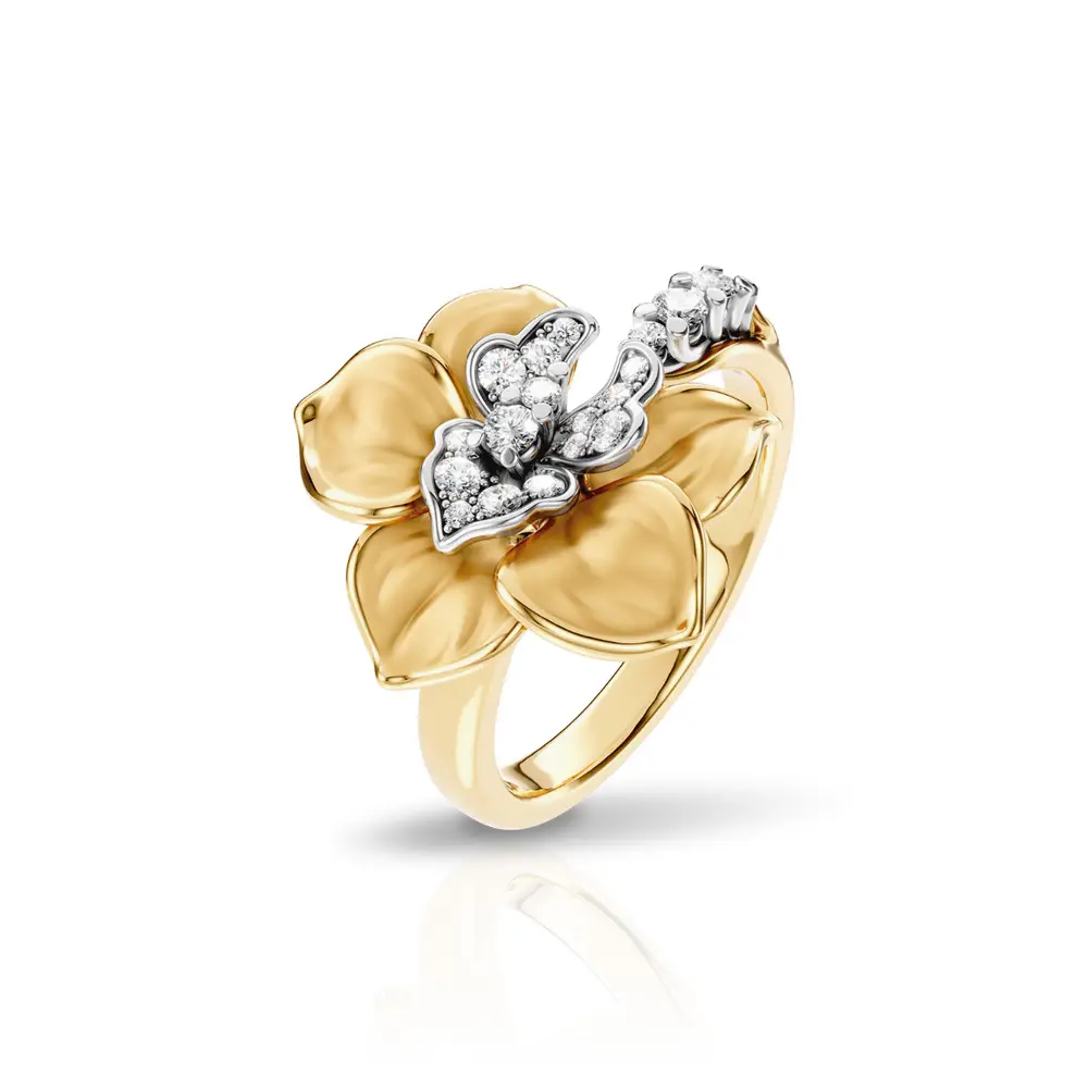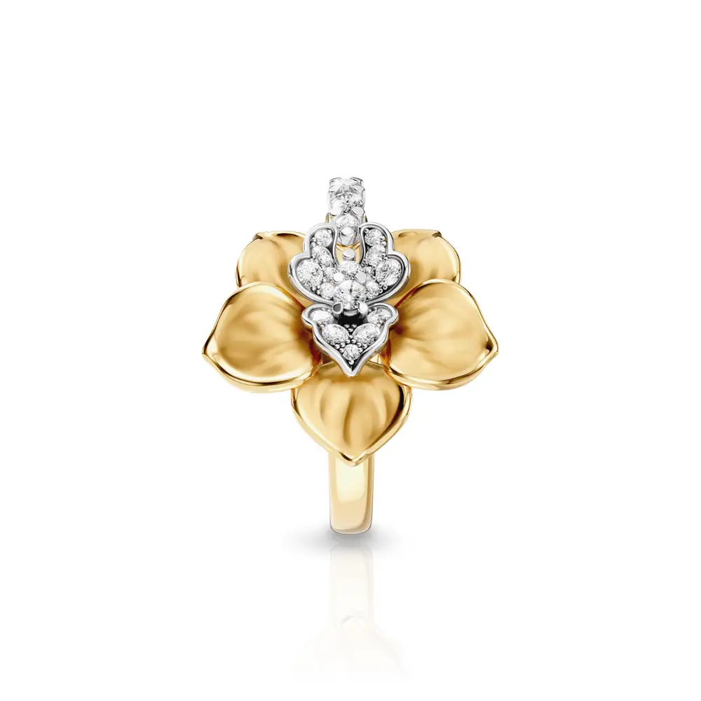 Кольцо Carrera y Carrera Orquídeas из коллекции Orquídeas от Carrera y Carrera — это изысканное украшение, вдохновлённое формой цветущей орхидеи. Кольцо выполнено из жёлтого и белого золота 18 карат, создавая контраст и долговечность. Центральным элементом является скульптурно проработанный мотив орхидеи.