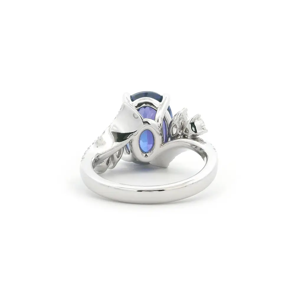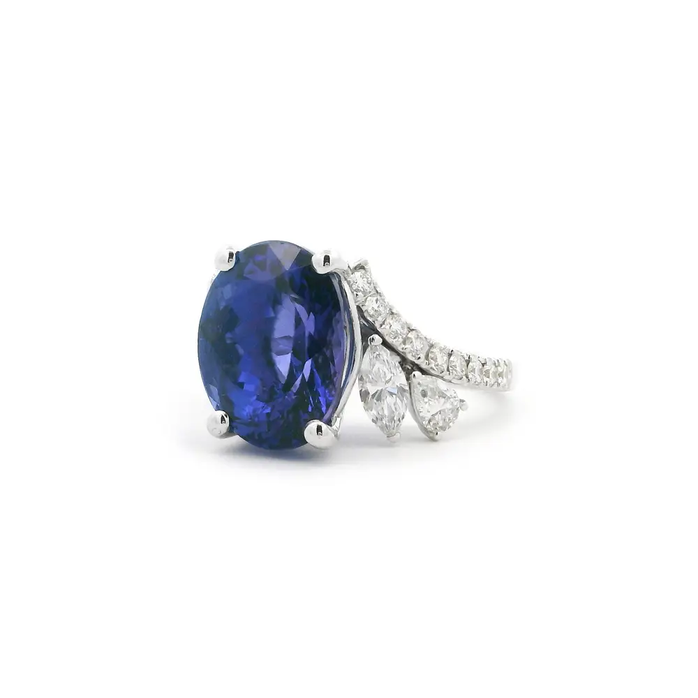 Кольцо из белого золота с овальным танзанитом и бриллиантами