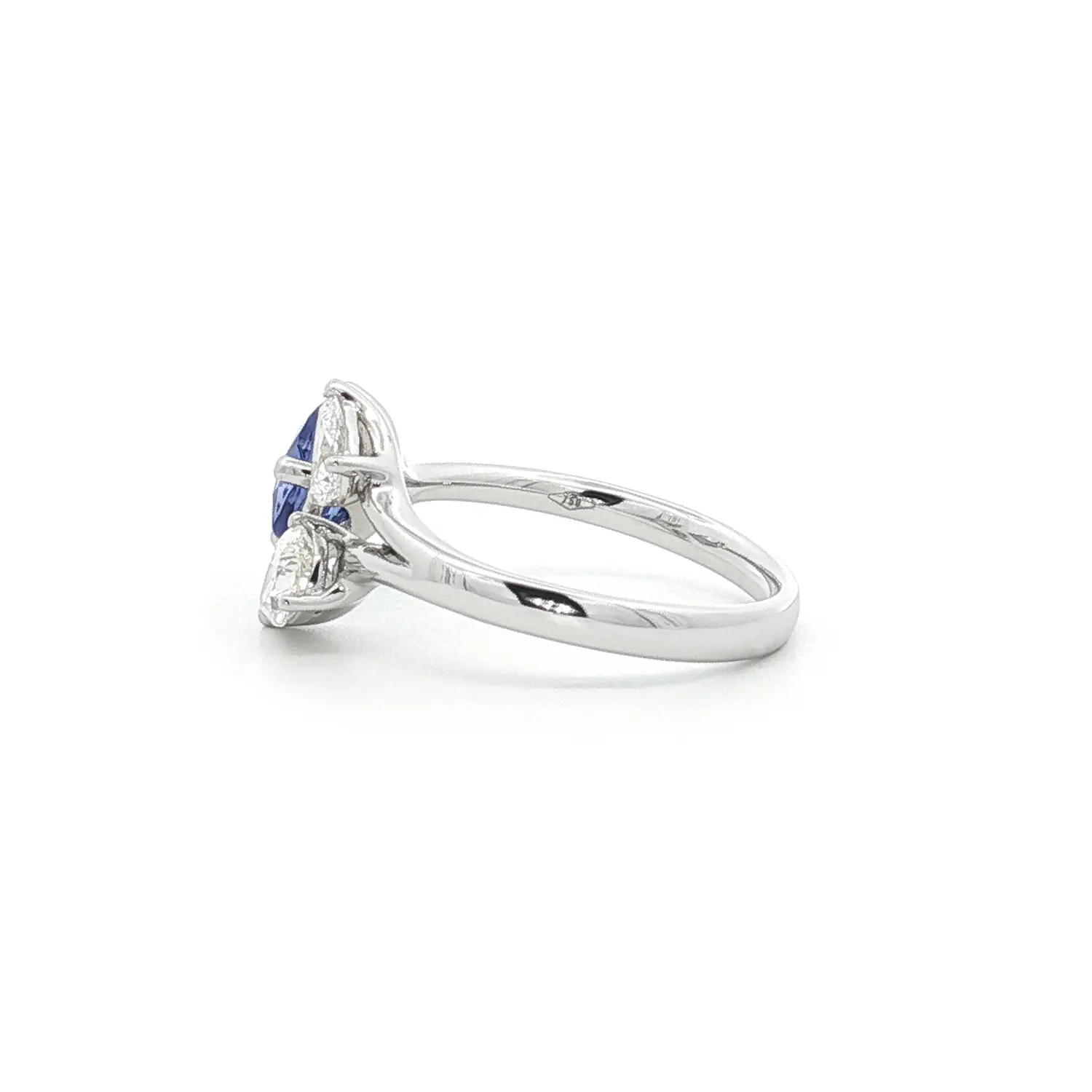 Это изящное кольцо из белого золота с танзанитом и бриллиантами воплощает современную элегантность и утончённую асимметрию. В центре композиции — танзанит грушевидной огранки, глубокий сине-фиолетовый оттенок которого напоминает африканский закат. По обе стороны его окружают бриллианты в форме капли, создавая ощущение лёгкости и движения. Танзанит символизирует интуицию, индивидуальность и внутреннюю гармонию.
