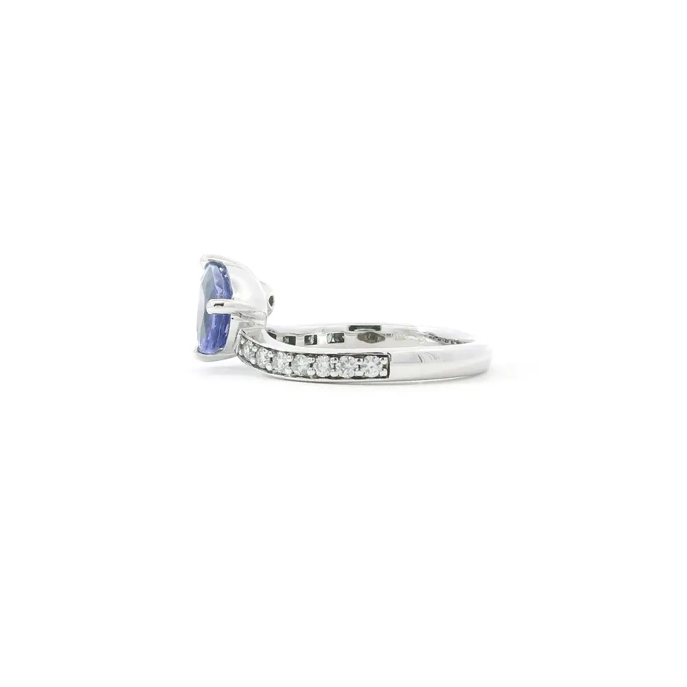 Кольцо из белого золота с танзанитом и бриллиантом в форме капли