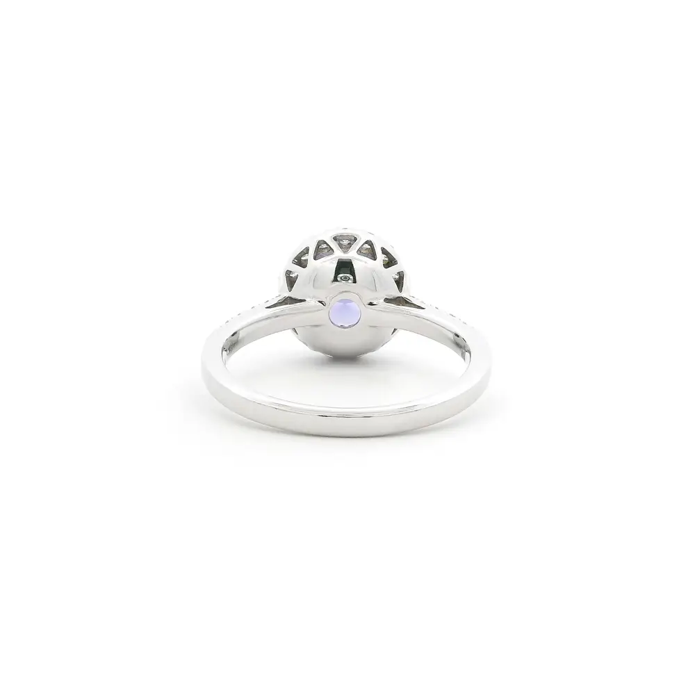 Кольцо из белого золота с танзанитом и бриллиантовым ореолом