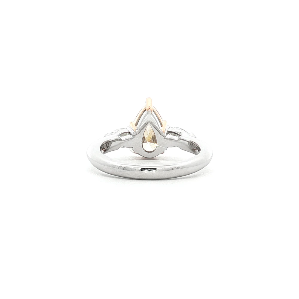 Это элегантное кольцо выполнено из золота 18 карат и украшено редким фантазийным жёлтым бриллиантом огранки “груша”, который мгновенно привлекает внимание своим тёплым оттенком и блеском. Этот исключительный камень символизирует оригинальность и роскошь, превращая украшение в настоящий шедевр.