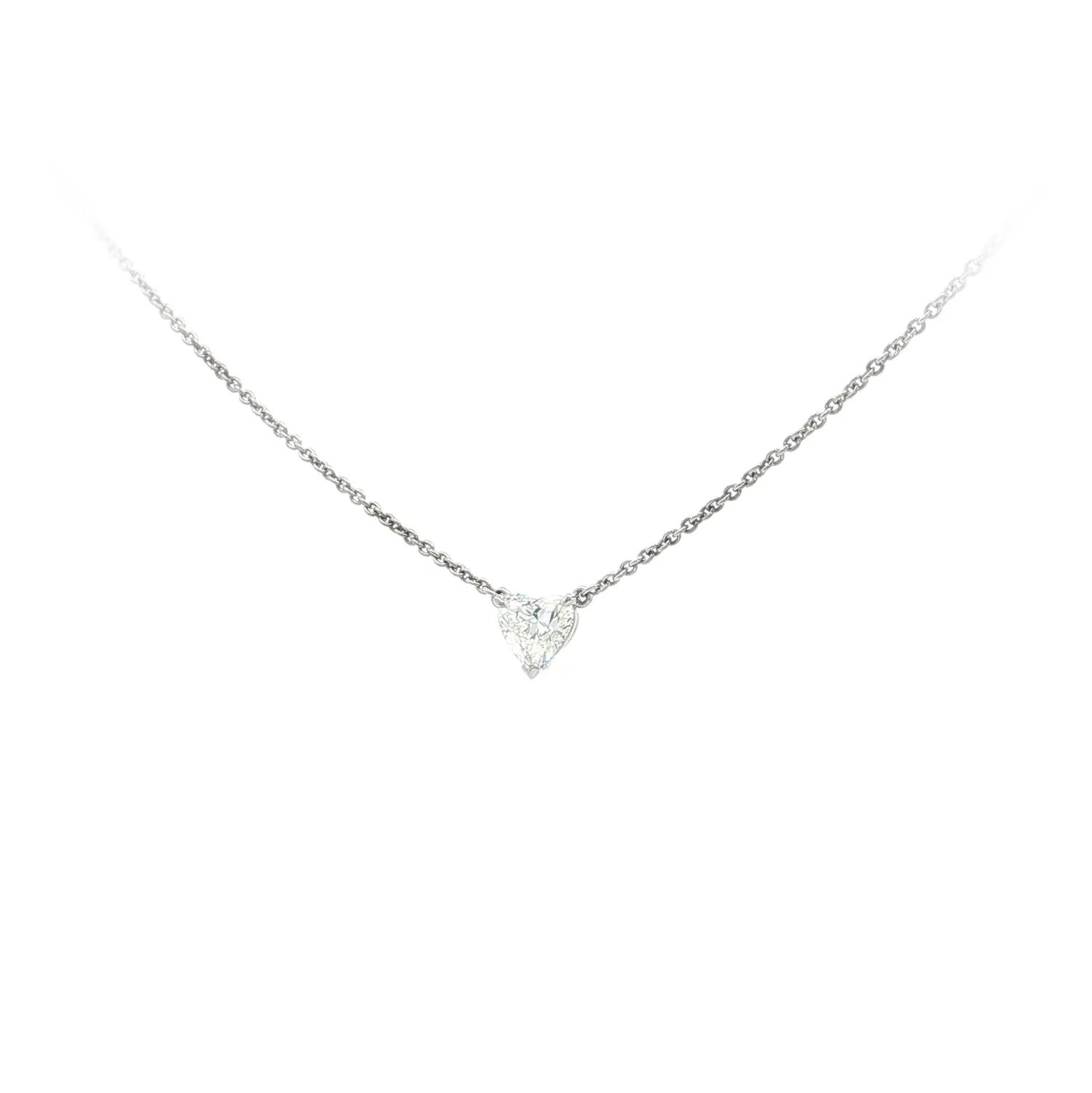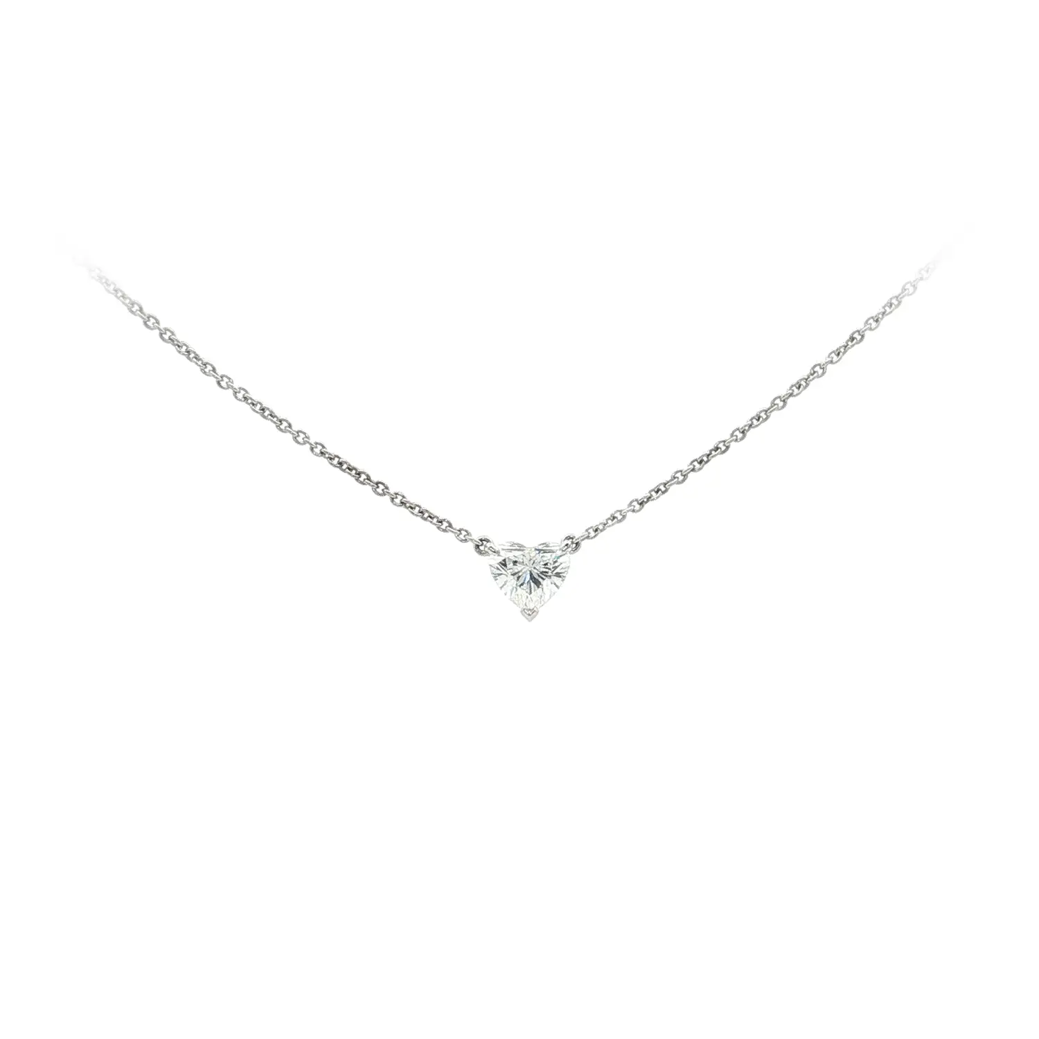 Это утончённое колье из белого золота с бриллиантом в форме сердца — символ чистоты, любви и вечной элегантности. Минималистичный дизайн подчёркивает сияние бриллианта, который сверкает с исключительной яркостью. Подвеска на тонкой цепочке из белого золота придаёт образу лёгкость и женственность.