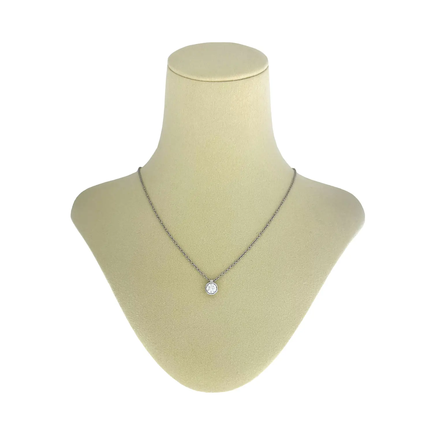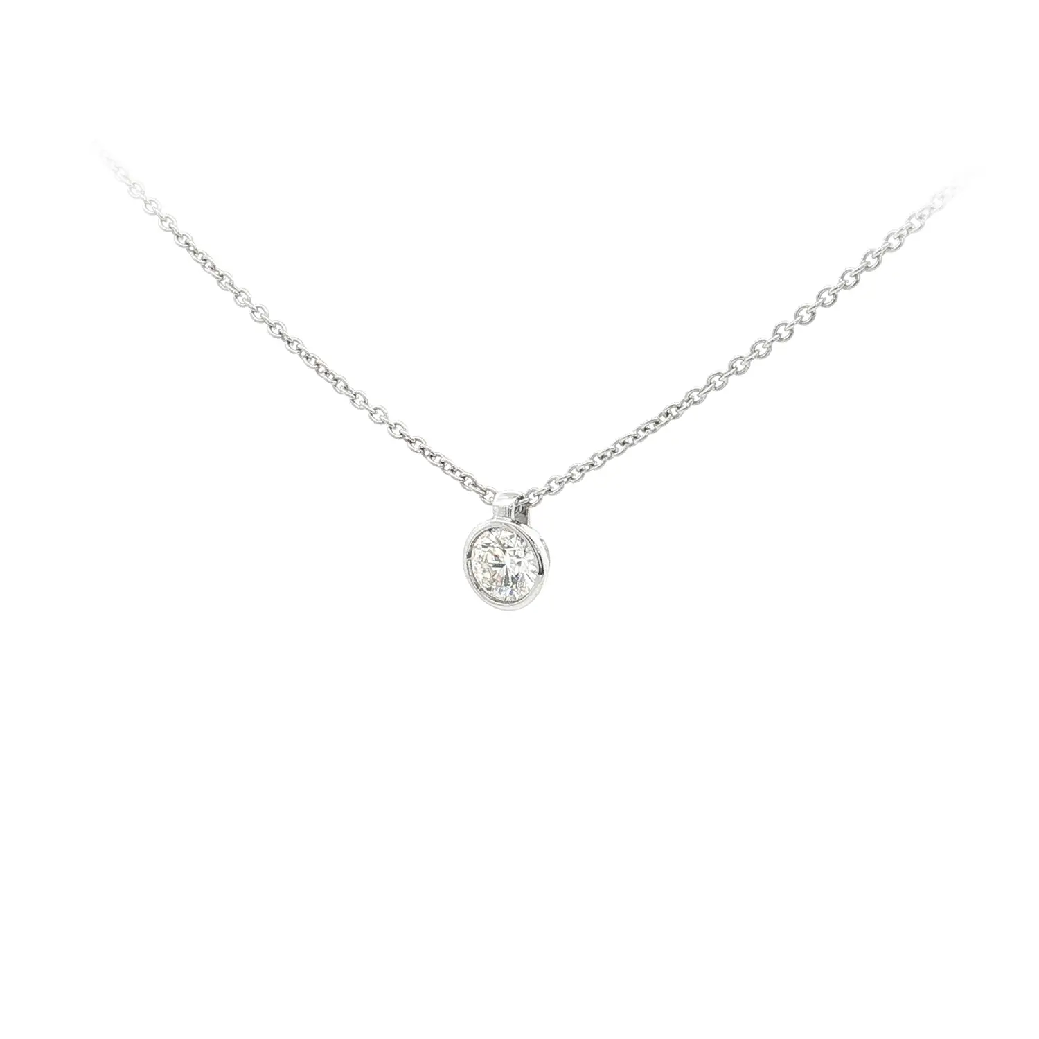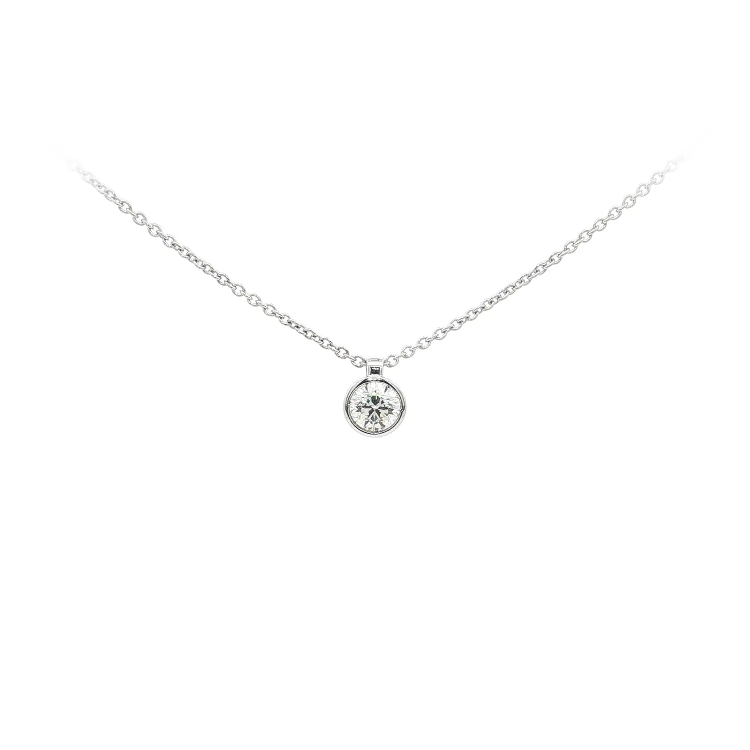 Это колье из белого золота с бриллиантом весом 0,61 карата воплощает гармонию утончённости и современного стиля. Камень круглой огранки заключён в гладкую оправу, которая подчеркивает его блеск и защищает при ношении. Подвеска на изящной цепочке из белого золота излучает лёгкость и элегантность, создавая впечатление безупречной простоты и благородного сияния.