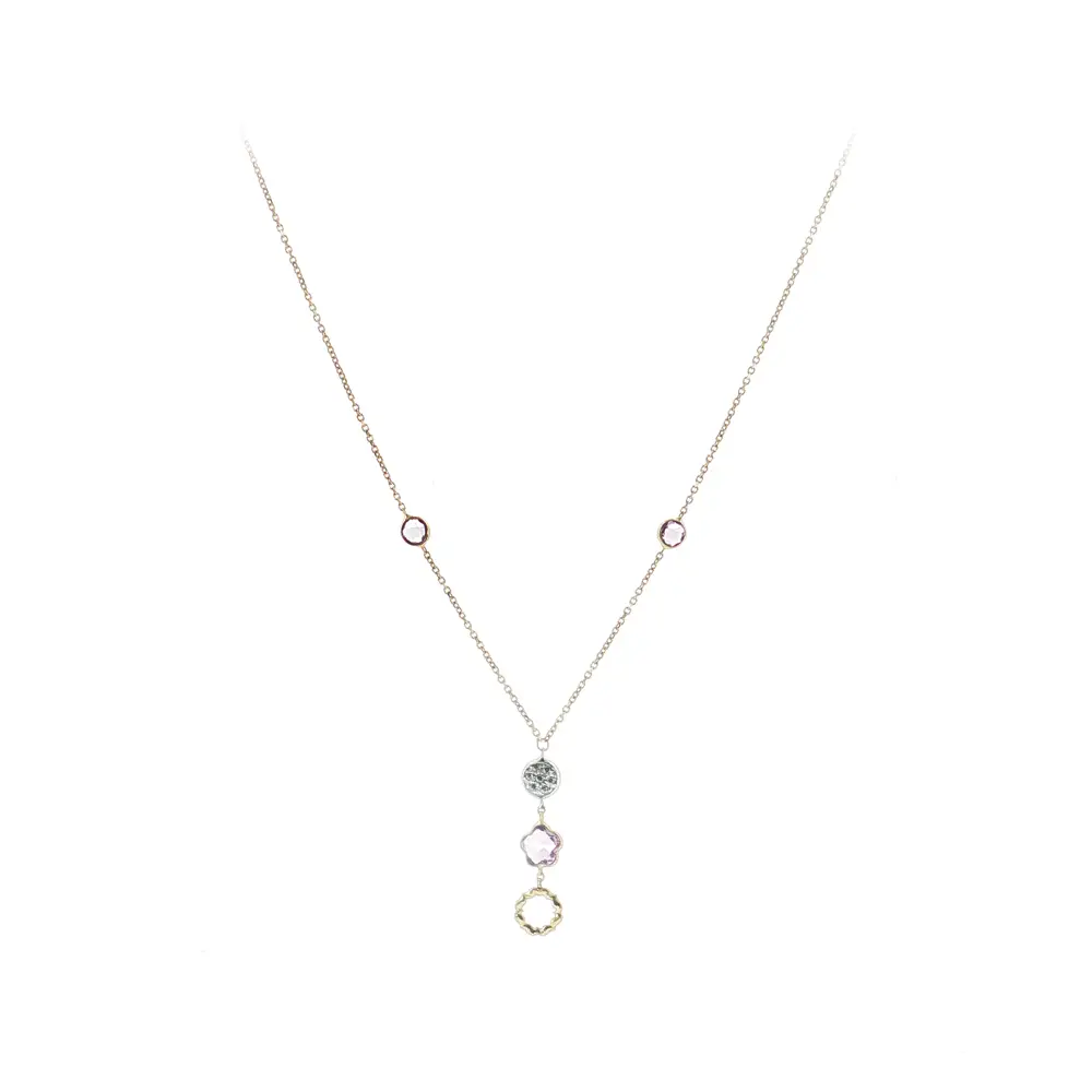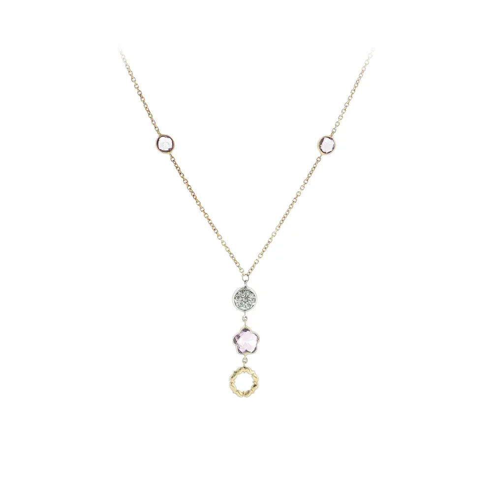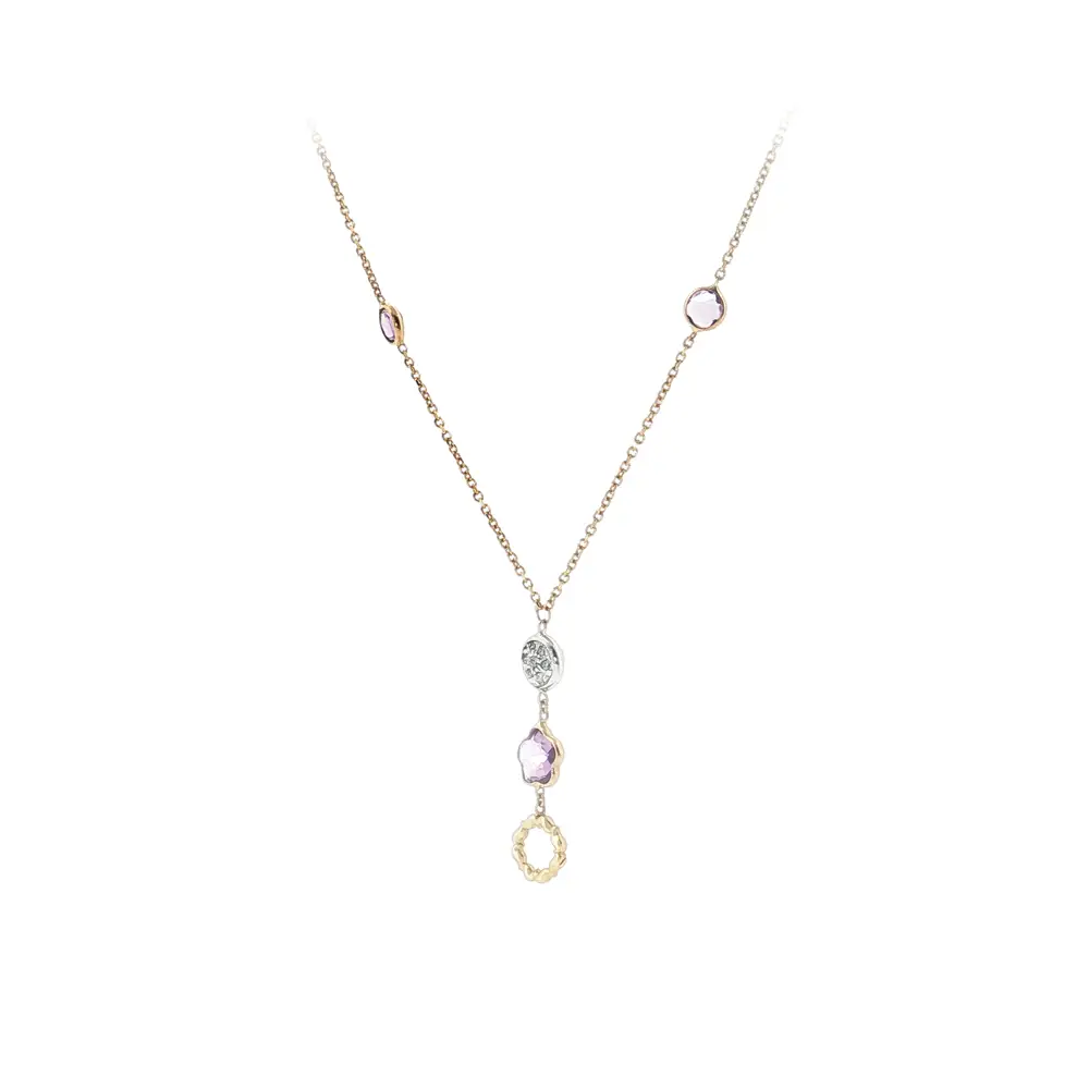 Колье из золота 14 карат с фиолетовым камнем и цирконами