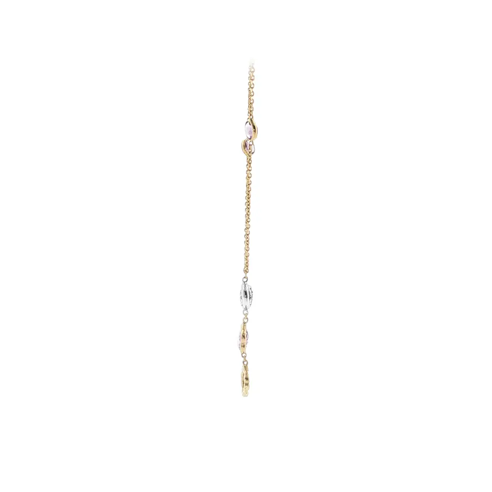 Элегантное колье из золота 14 карат с фиолетовым камнем и цирконами — идеальный аксессуар для женщин, которые ценят утонченную элегантность с оттенком роскоши. Фиолетовый камень выглядит изысканно и гармонично, а сверкающие цирконы придают украшению яркое сияние. Это колье прекрасно подчеркивает линию декольте и подходит как для повседневной носки, так и для торжественных случаев.