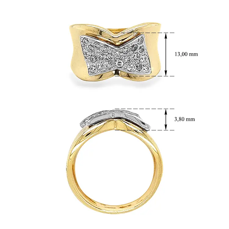 Комбинированное золотое кольцо с цирконами