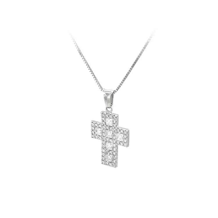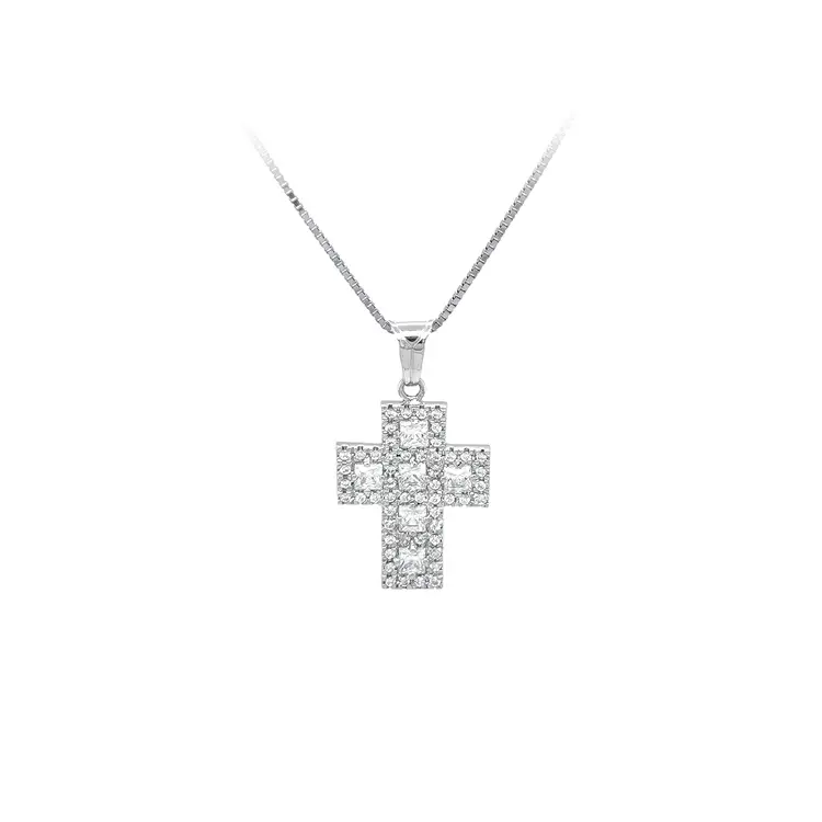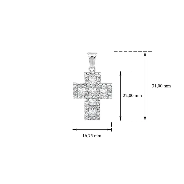 Крест с цирконами из белого золота