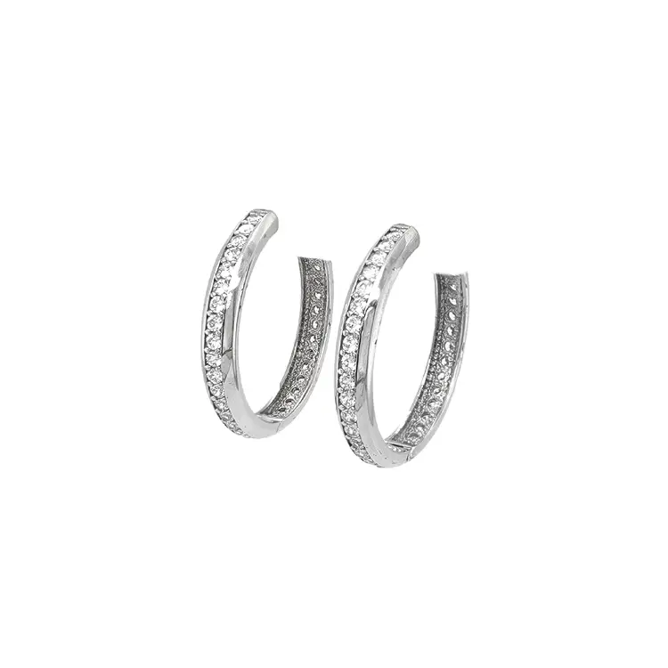 Круглые серьги с цирконами из белого золота