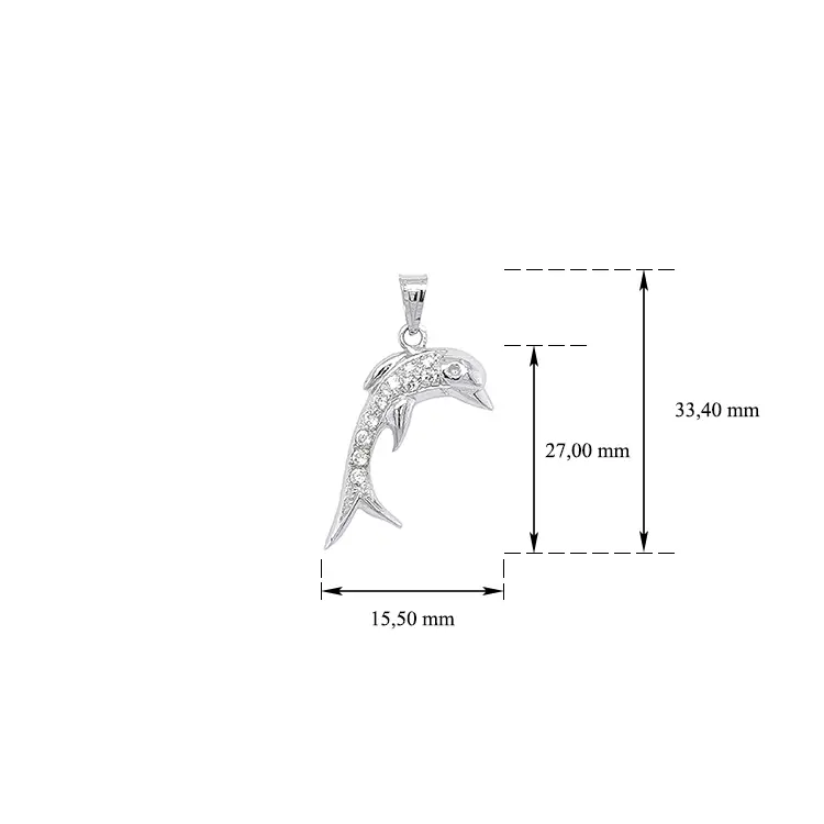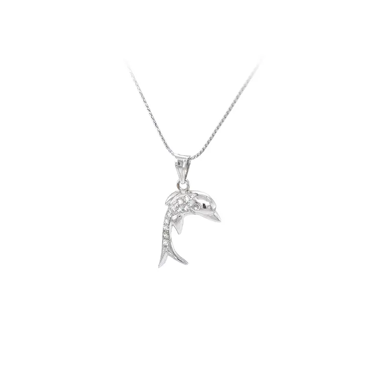 Кулон Дельфин с цирконами из белого золота