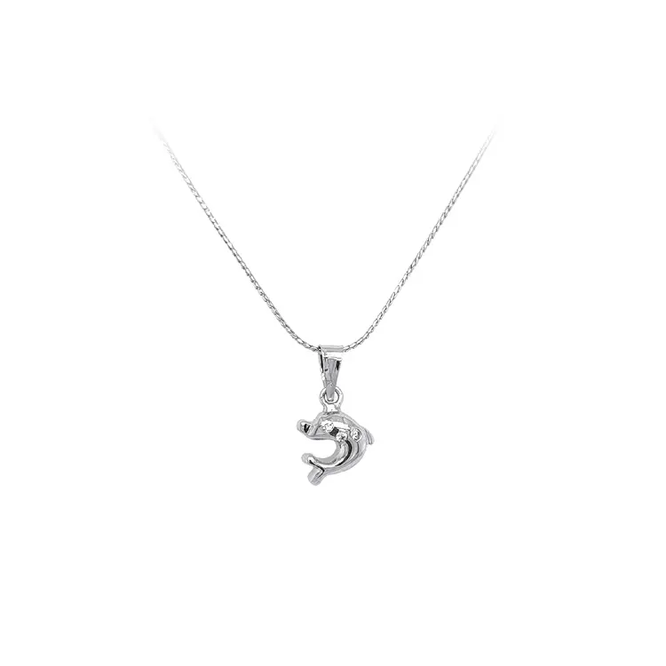 Кулон Дельфин с цирконами из белого золота