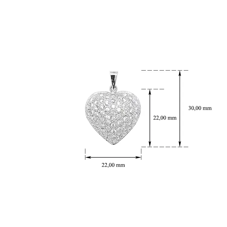 Кулон Сердце с цирконами из белого золота