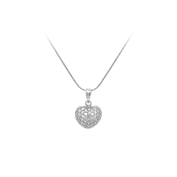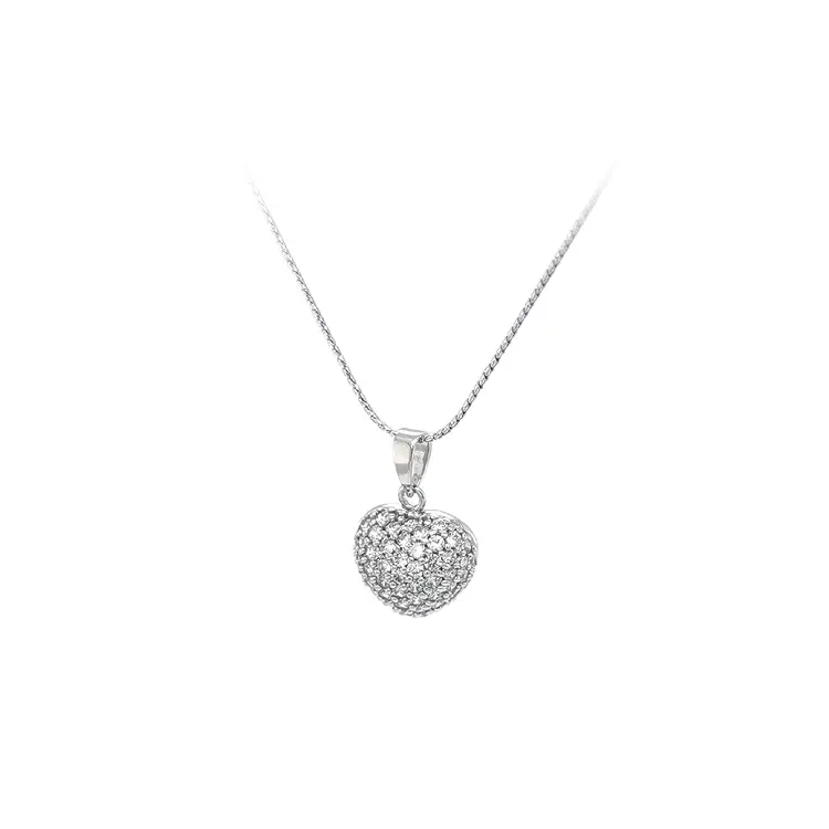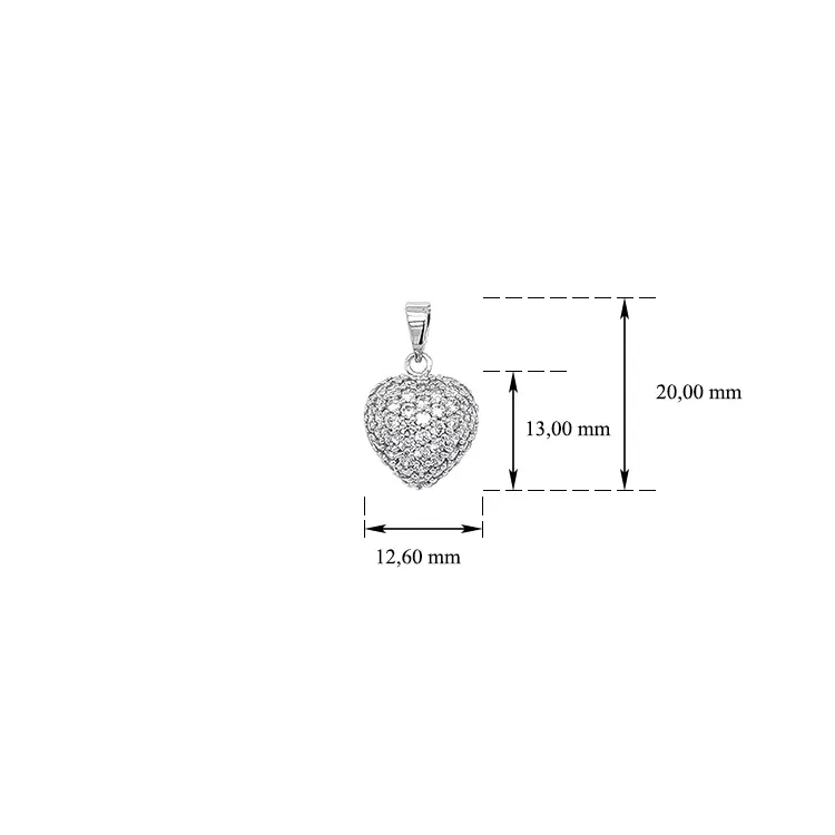 Кулон Сердце с цирконами из белого золота