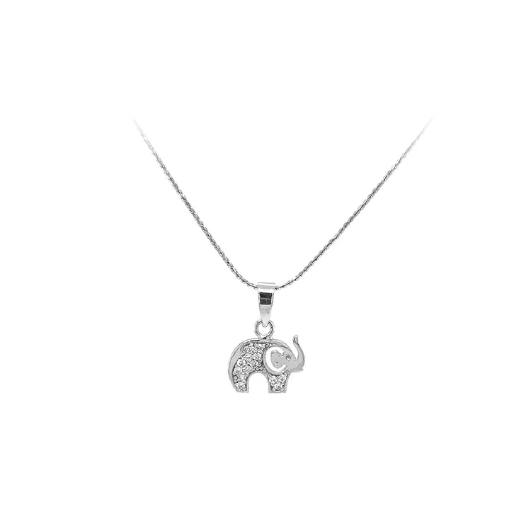 Кулон Слон с цирконами из белого золота