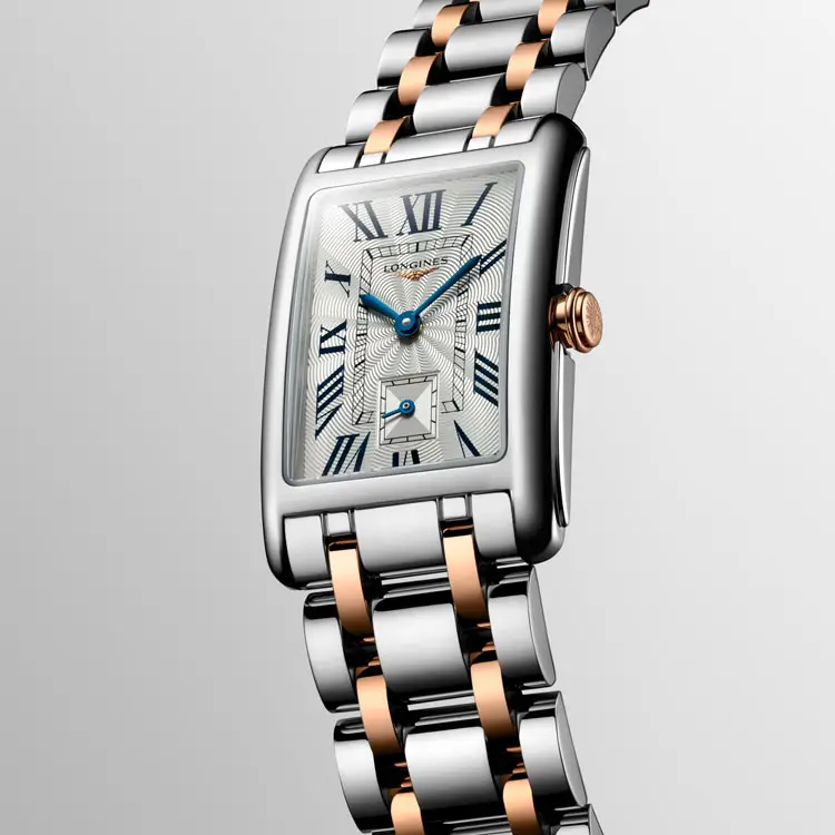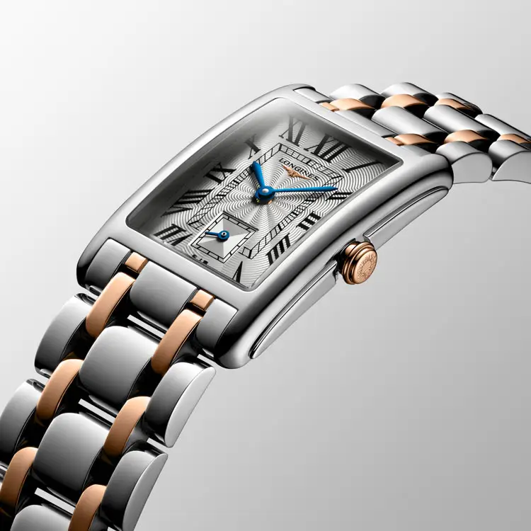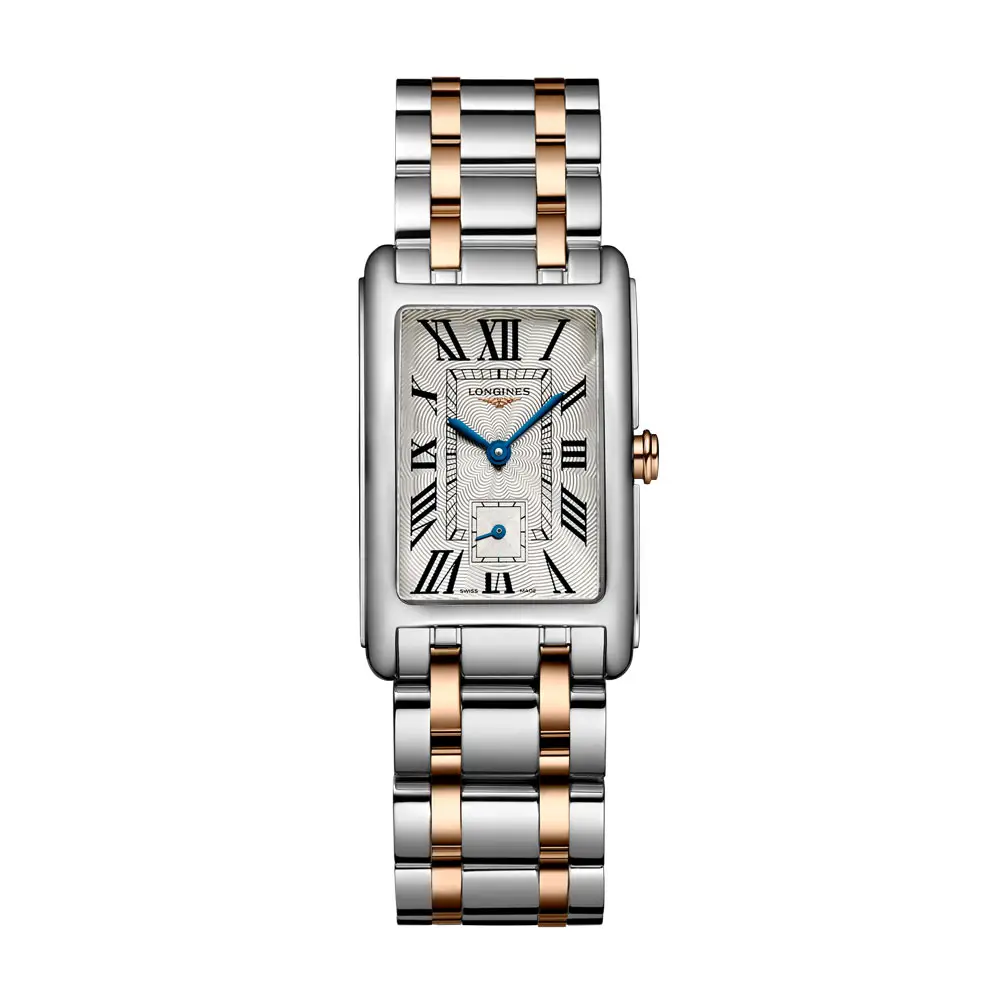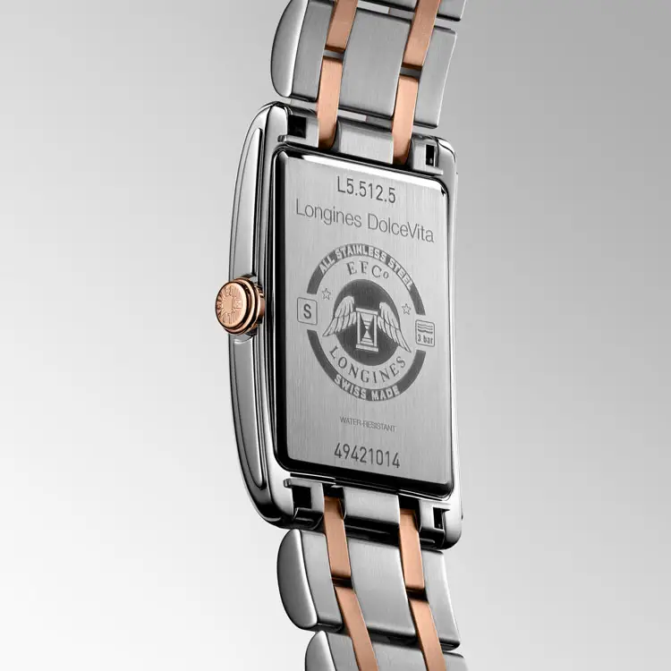 Longines DolceVita L5.512.5.71.7 — это женские часы с вечной элегантностью, вдохновлённые классическим прямоугольным дизайном. Корпус размером 23,30 × 37,00 мм из нержавеющей стали дополнен заводной головкой из розового золота 18 карат, придающей изысканный акцент.