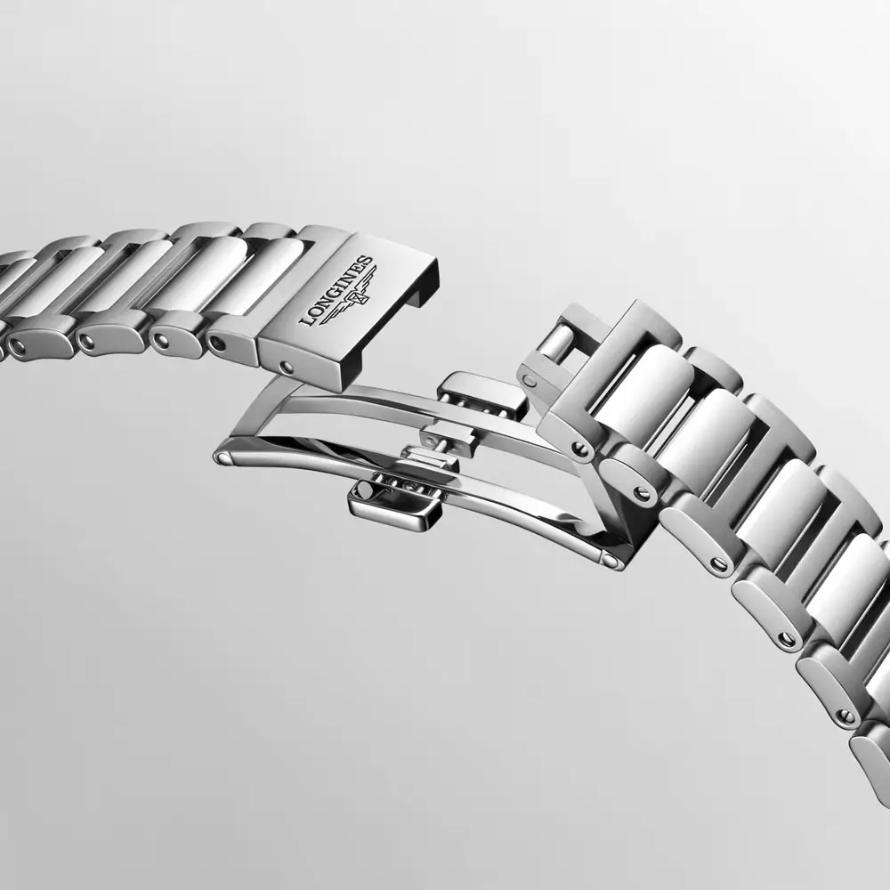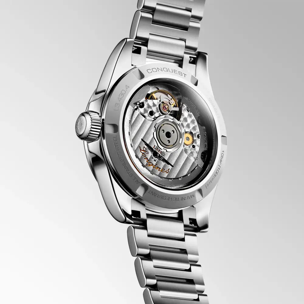 Внутри установлен автоматический калибр L888 с кремниевой пружиной и запасом хода 72 часа, обеспечивающий точность и стабильность. Модель дополнена стальным браслетом с тройной раскладывающейся застёжкой, сочетающим комфорт и надёжность. Эти часы идеально отражают дух коллекции Conquest – элегантность, функциональность и швейцарская традиция.