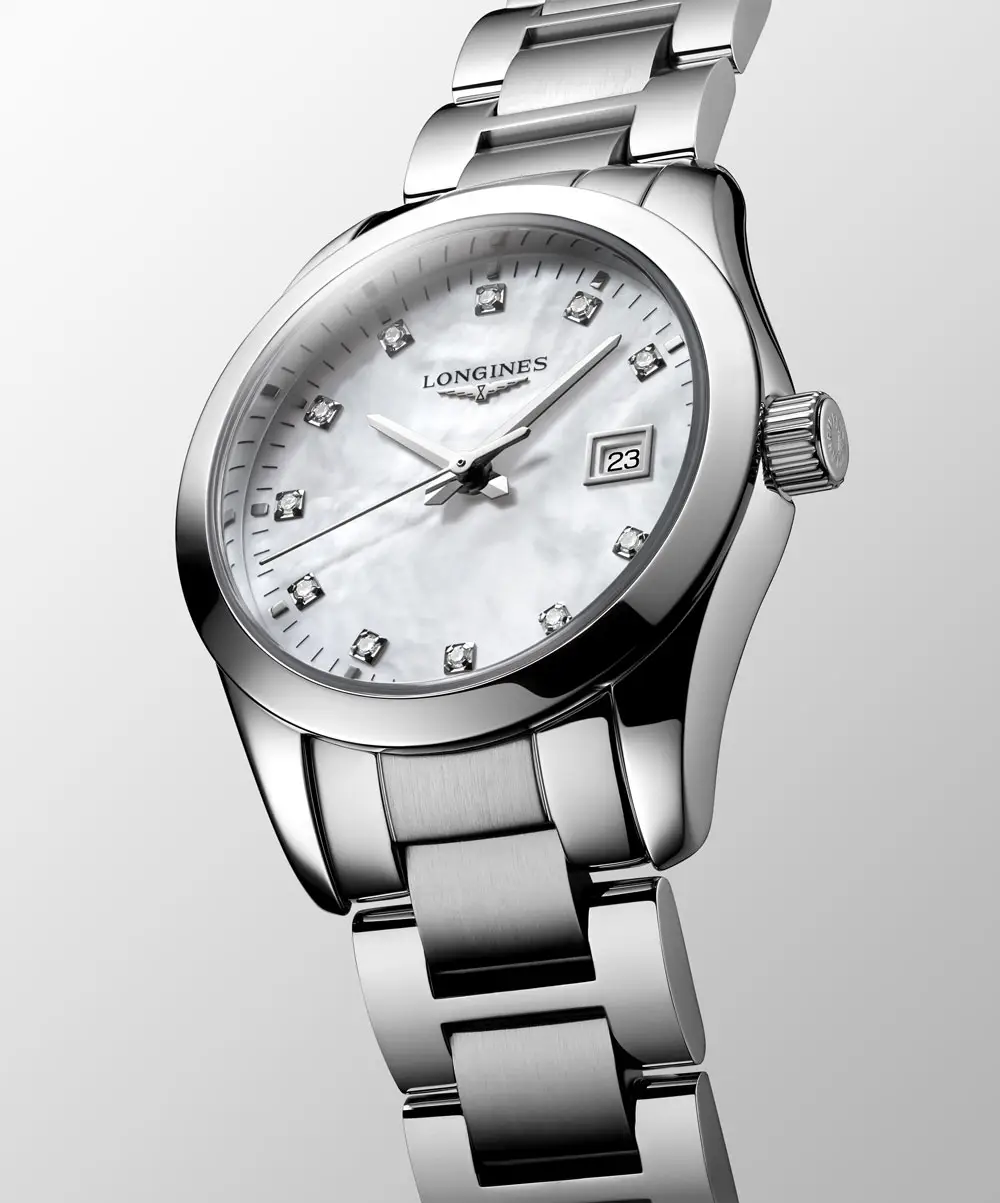 Стальной браслет сочетает полированные и сатинированные поверхности и оснащён раскладывающейся застёжкой с тройной системой безопасности и кнопочным механизмом, обеспечивающим комфорт и надёжность. Conquest Classic L2.286.4.87.6 станет выбором женщин, которые ценят вечную элегантность и тонкий роскошный акцент.