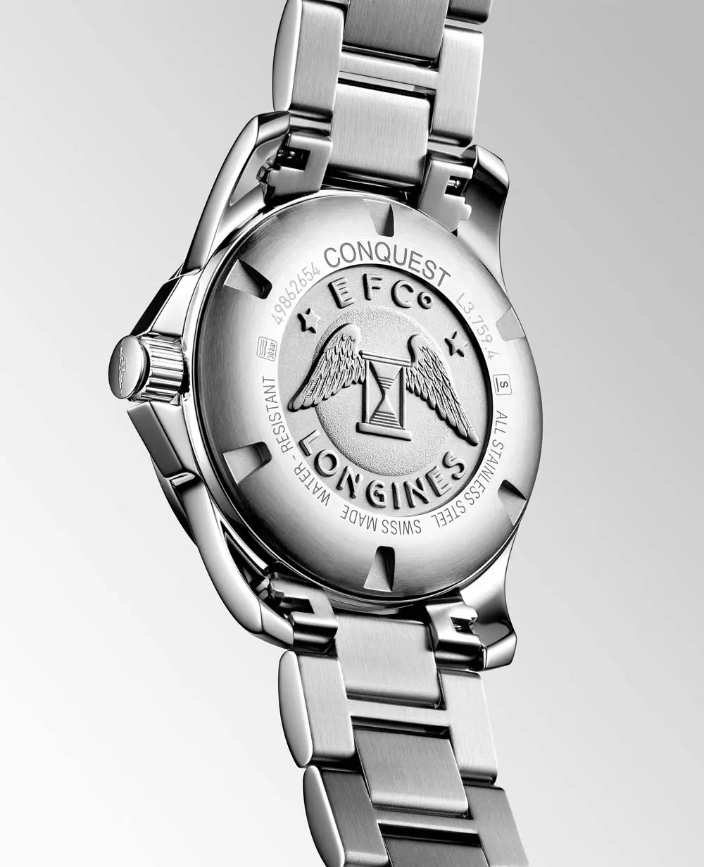 Longines Conquest L3.759.4.76.6 олицетворяет гармонию спортивных характеристик и вечной элегантности. Корпус из нержавеющей стали диаметром 41 мм защищён сапфировым стеклом с устойчивостью к царапинам и обладает впечатляющей водонепроницаемостью до 30 бар (300 м), обеспечивая надёжность даже в сложных условиях.