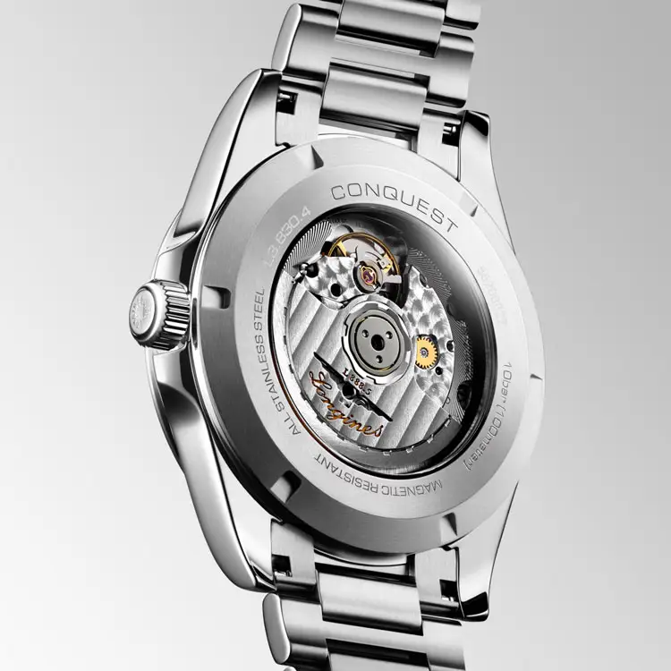 Стальной браслет в серебристом цвете с раскладывающейся застёжкой обеспечивает комфорт, надёжность и спортивный стиль. Longines Conquest L3.830.4.72.6 — идеальный выбор для мужчин, ценящих современный стиль, швейцарское качество и универсальность.