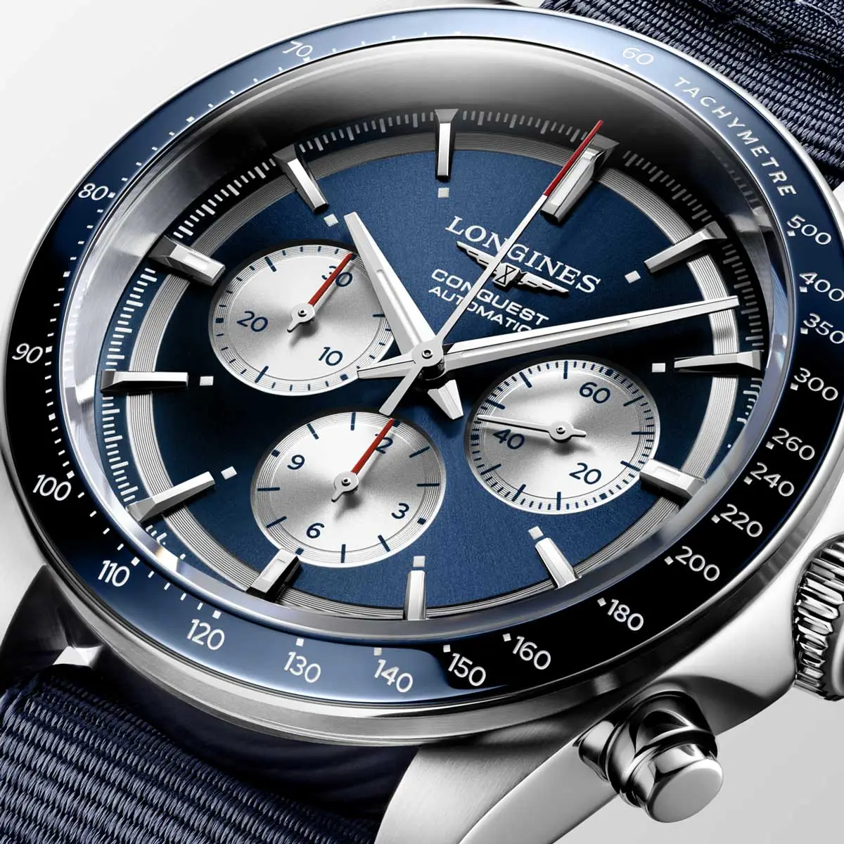 Kolekce Longines Conquest představuje dokonalou rovnováhu mezi sportovním charakterem a klasickou elegancí, pro kterou je značka Longines po celém světě uznávána. V duchu hesla “Elegance is an attitude” spojuje Conquest technickou inovaci, spolehlivost a odvážný design, ideální pro ty, kteří vyžadují výkon bez kompromisů ve stylu.