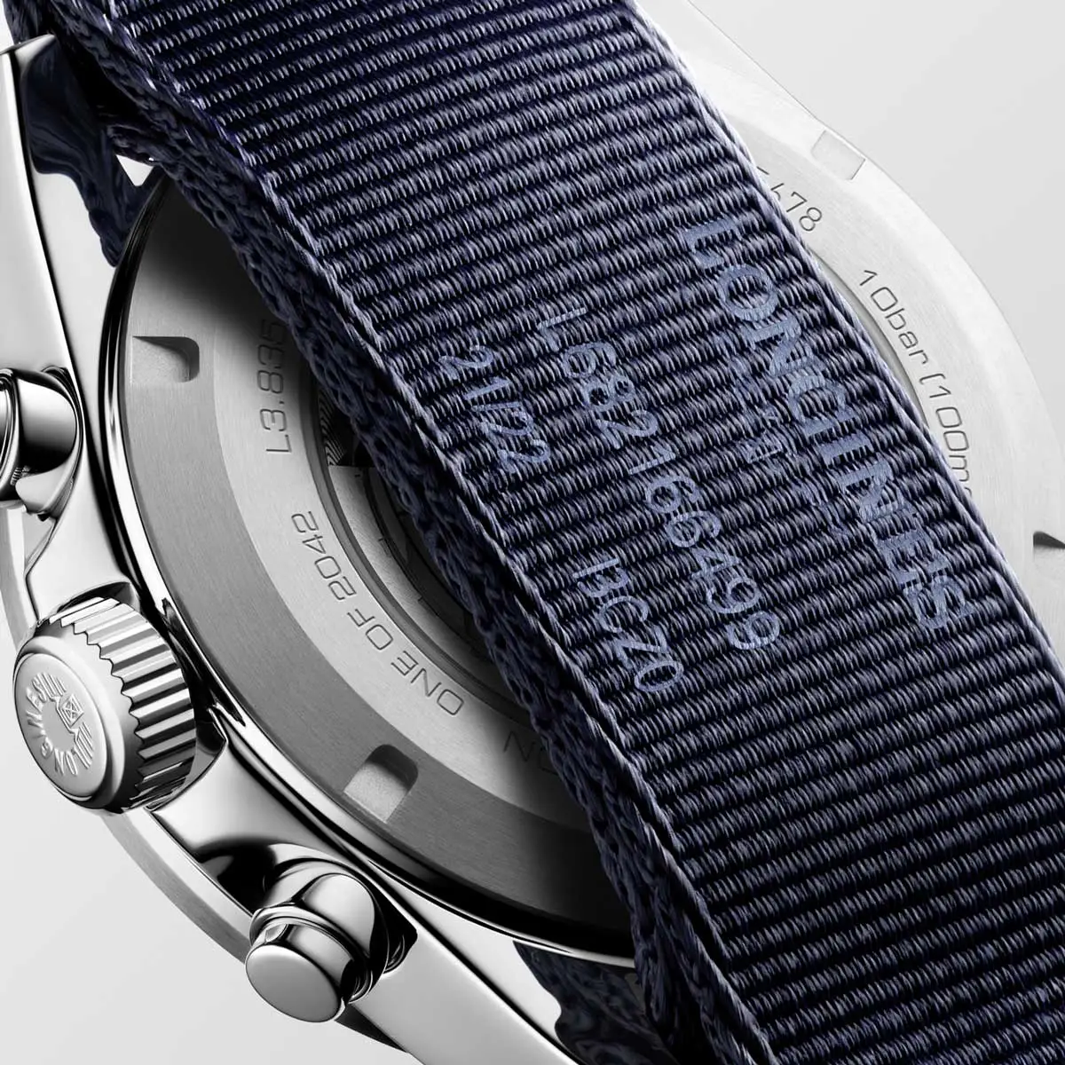 Внутри установлен автоматический калибр L898.5 с запасом хода 59 часов, подтверждающий высочайшее качество швейцарского часового искусства. Модель дополняет текстильный ремешок с тройной раскладывающейся застёжкой, обеспечивающий комфорт и надежность. Эти часы представляют собой идеальное сочетание спортивного духа, технического совершенства и престижа Longines.