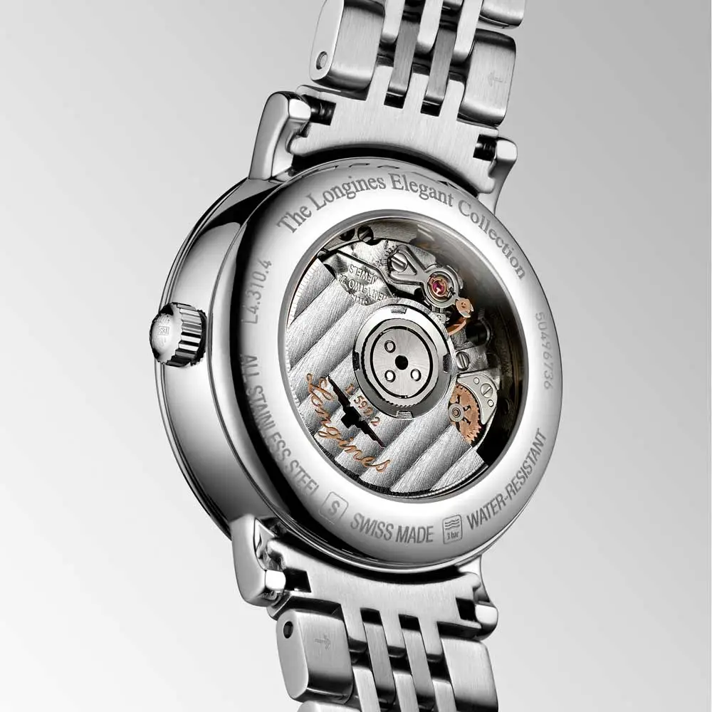 Внутри установлен автоматический калибр L592.2, обеспечивающий точность и надёжность, дополненный функцией даты. Сквозь прозрачную заднюю крышку можно рассмотреть тончайшие детали швейцарского механизма.