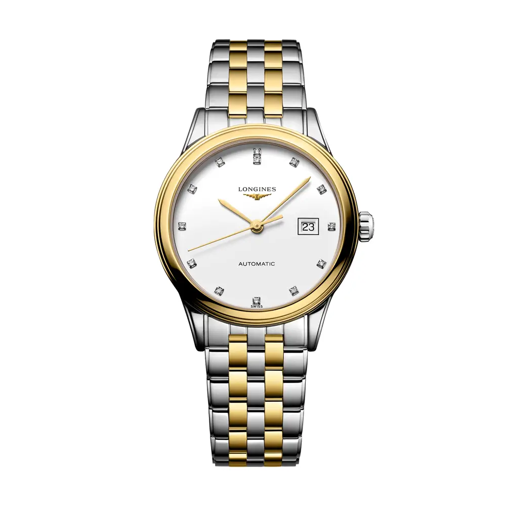 Двухцветный браслет из стали и жёлтого PVD обеспечивает комфорт и элегантность при ношении. Благодаря водонепроницаемости до 30 метров и безупречному качеству исполнения, Longines Flagship L4.374.3.27.7 станет идеальным выбором для повседневной изысканности и торжественных случаев.