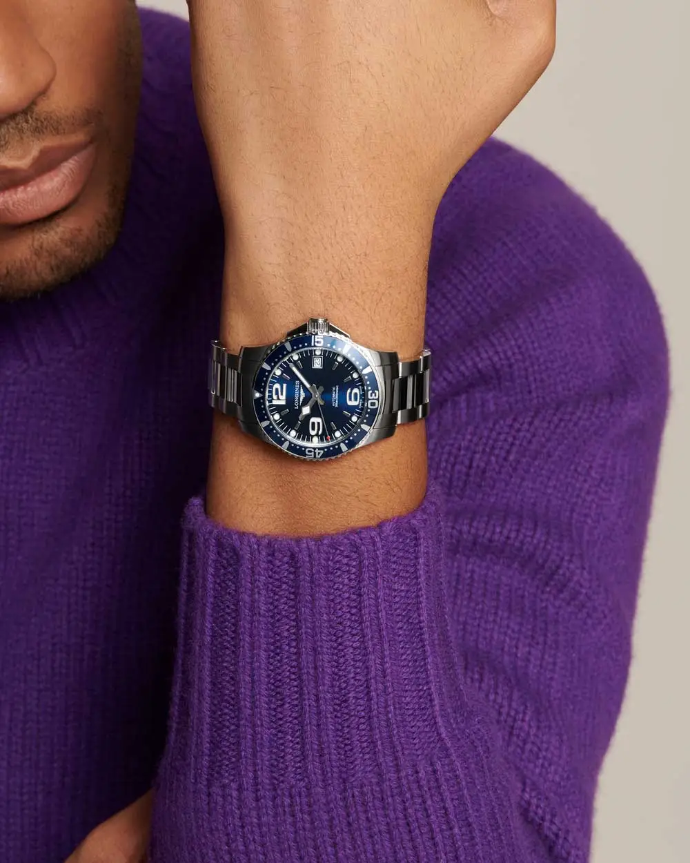 Внутри установлен автоматический калибр L888 с запасом хода 72 часа, обеспечивающий точность и стабильность работы. Часы дополнены стальным браслетом с двойной раскладывающейся застёжкой безопасности, который сочетает комфорт и надёжность. Эта модель идеально отражает ДНК коллекции HydroConquest – производительность, надёжность и традиции швейцарского часового искусства.