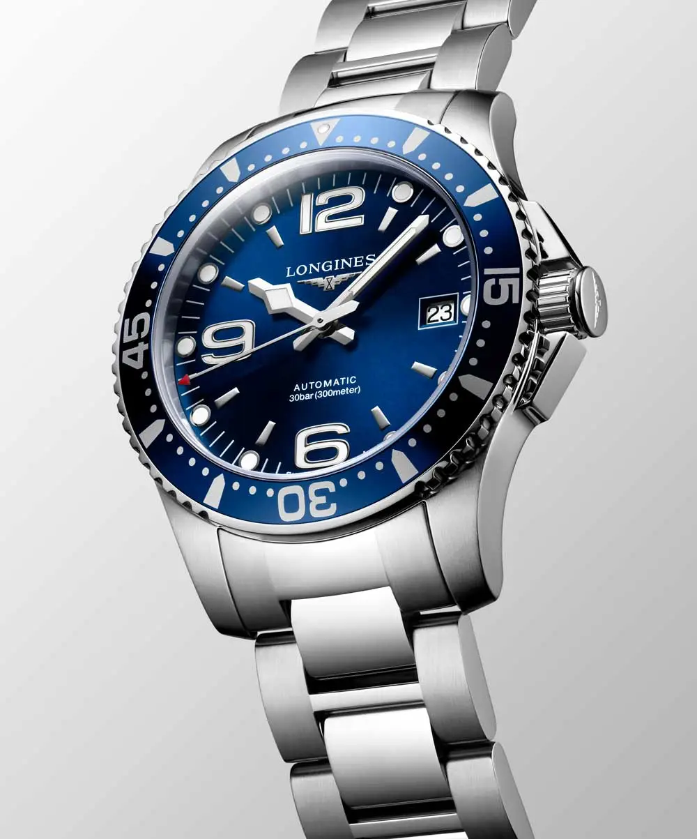 Modely HydroConquest se vyznačují robustním pouzdrem z ušlechtilé oceli, keramiky či titanu, vodotěsností až do 300 metrů a jednosměrně otočnou lunetou pro bezpečné měření času pod vodou. Ciferníky v odstínech modré, černé, šedé či zelené doplňují luminiscenční ručky a indexy, které zajišťují perfektní čitelnost i v hlubinách oceánu.