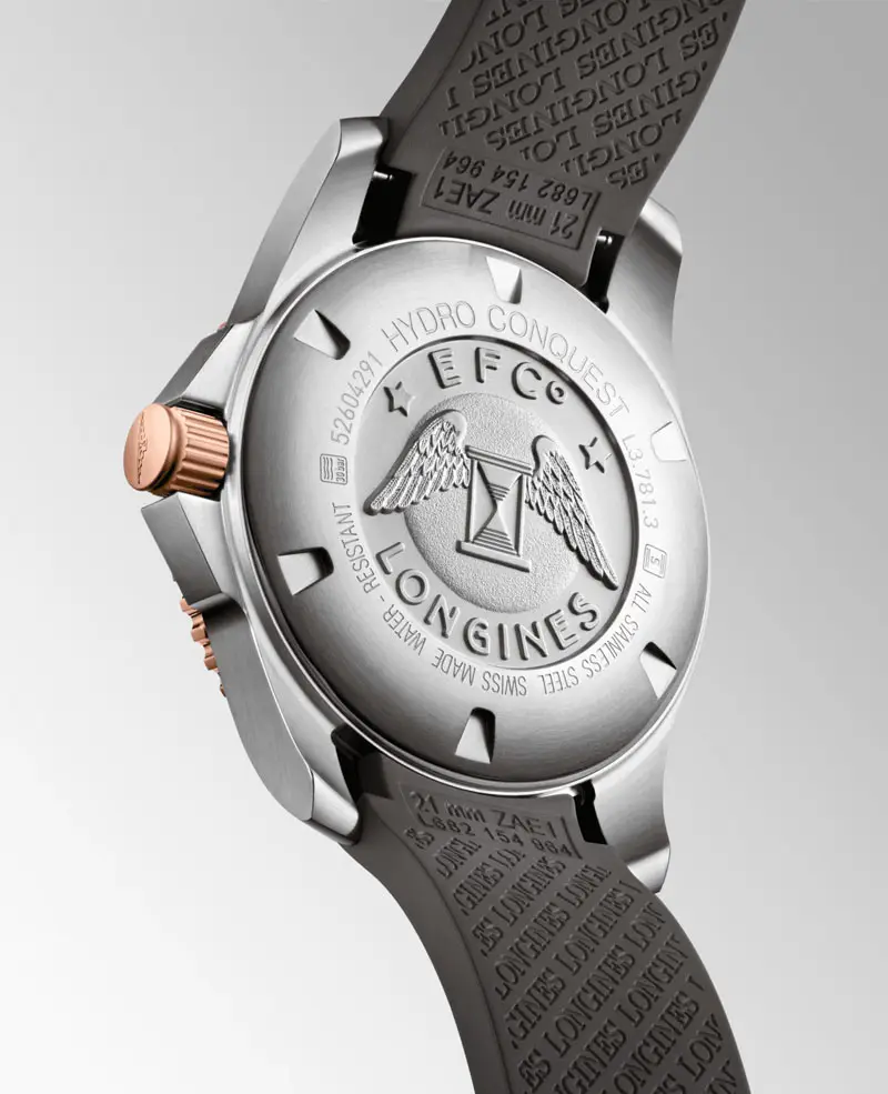 Modely HydroConquest se vyznačují robustním pouzdrem z ušlechtilé oceli, keramiky či titanu, vodotěsností až do 300 metrů a jednosměrně otočnou lunetou pro bezpečné měření času pod vodou. Ciferníky v odstínech modré, černé, šedé či zelené doplňují luminiscenční ručky a indexy, které zajišťují perfektní čitelnost i v hlubinách oceánu.