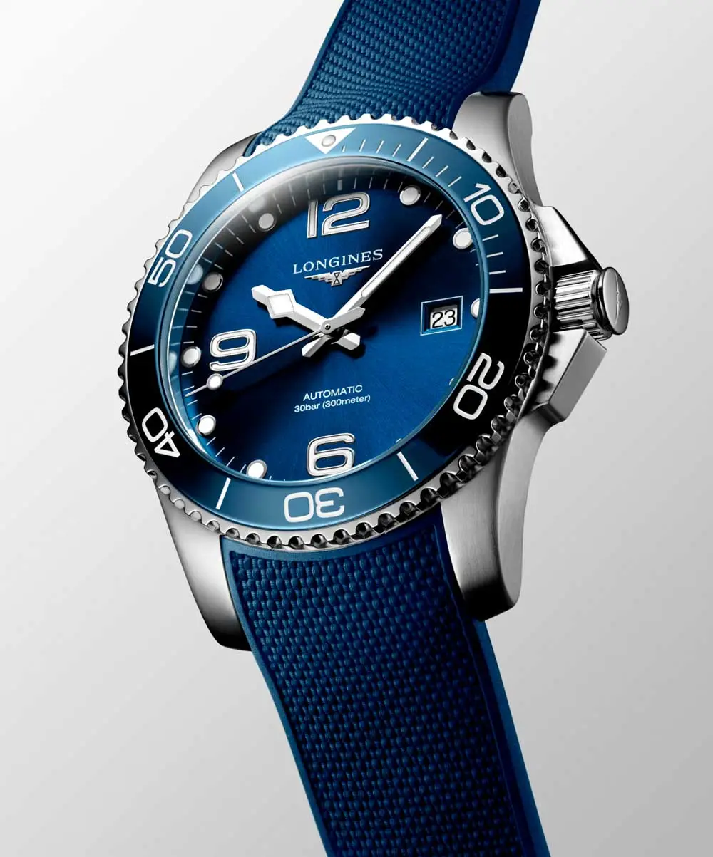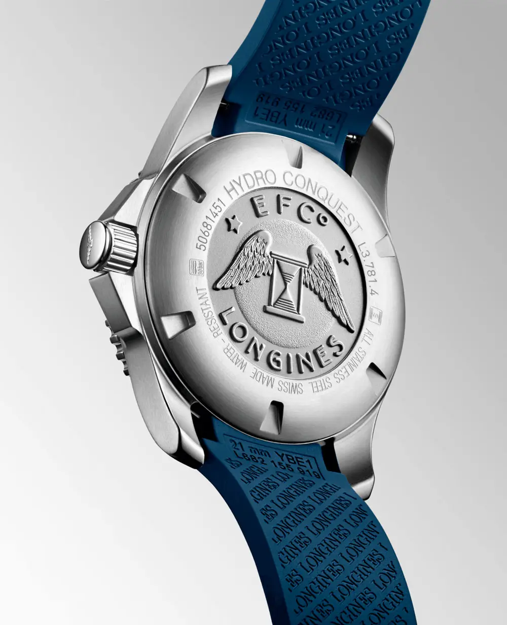 Modely HydroConquest se vyznačují robustním pouzdrem z ušlechtilé oceli, keramiky či titanu, vodotěsností až do 300 metrů a jednosměrně otočnou lunetou pro bezpečné měření času pod vodou. Ciferníky v odstínech modré, černé, šedé či zelené doplňují luminiscenční ručky a indexy, které zajišťují perfektní čitelnost i v hlubinách oceánu.