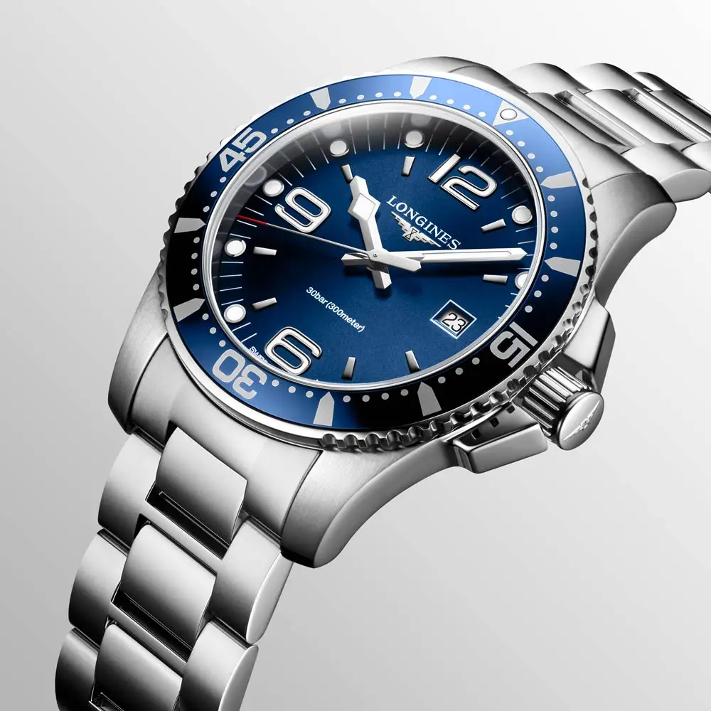 Modely HydroConquest se vyznačují robustním pouzdrem z ušlechtilé oceli, keramiky či titanu, vodotěsností až do 300 metrů a jednosměrně otočnou lunetou pro bezpečné měření času pod vodou. Ciferníky v odstínech modré, černé, šedé či zelené doplňují luminiscenční ručky a indexy, které zajišťují perfektní čitelnost i v hlubinách oceánu.