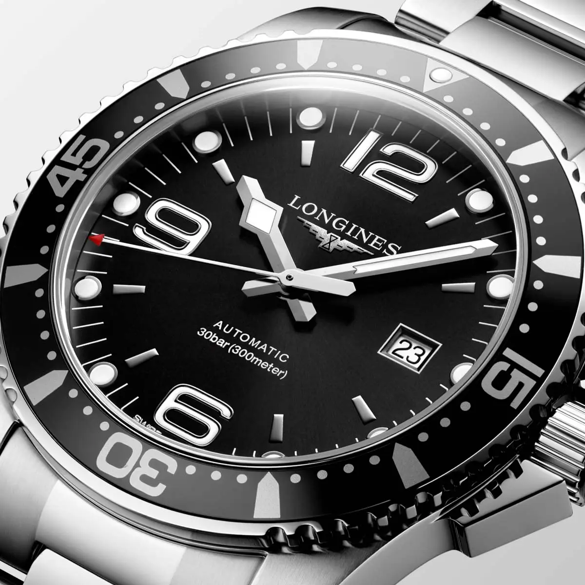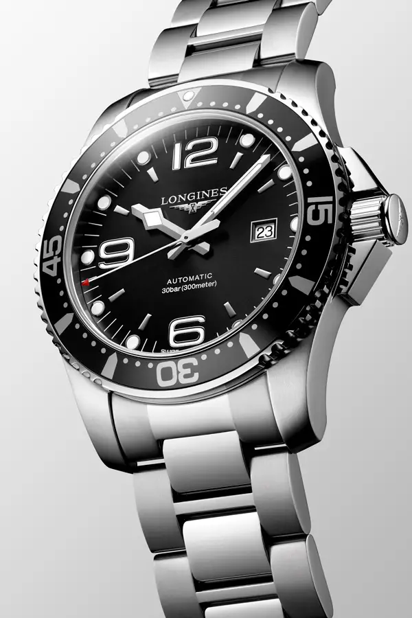 Modely HydroConquest se vyznačují robustním pouzdrem z ušlechtilé oceli, keramiky či titanu, vodotěsností až do 300 metrů a jednosměrně otočnou lunetou pro bezpečné měření času pod vodou. Ciferníky v odstínech modré, černé, šedé či zelené doplňují luminiscenční ručky a indexy, které zajišťují perfektní čitelnost i v hlubinách oceánu.