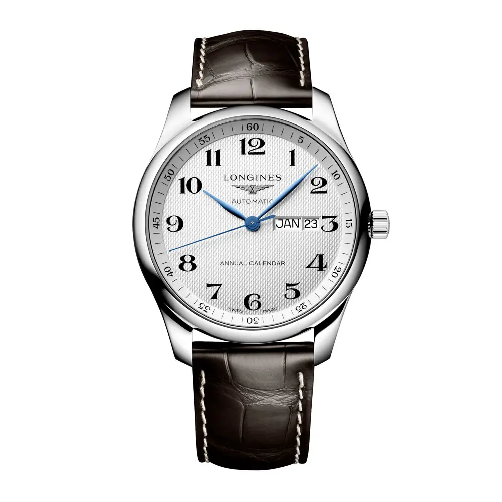 Longines Master Collection L2.920.4.78.3 — изысканные мужские часы с усложнением годового календаря, гармонично сочетающие швейцарские традиции и современный стиль. Корпус из нержавеющей стали диаметром 42 мм оснащён сапфировым стеклом, устойчивым к царапинам, а прозрачная задняя крышка открывает вид на декорированный механизм.