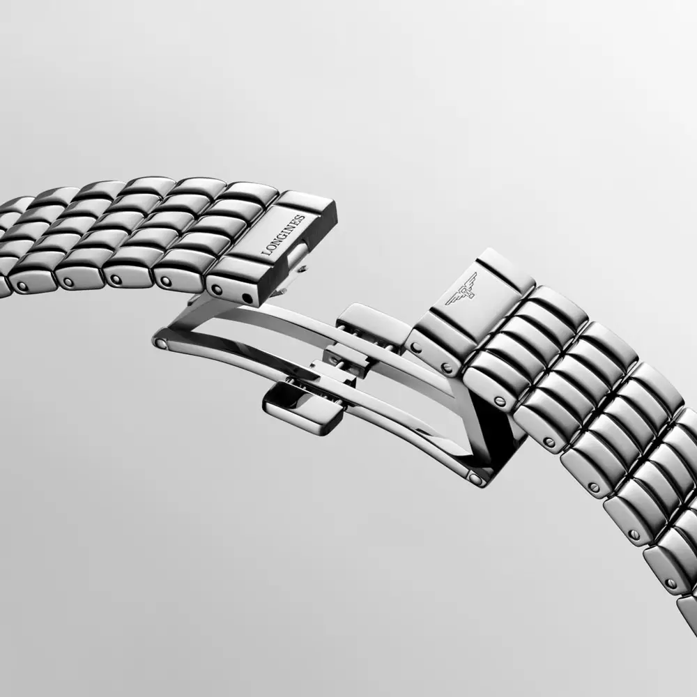 Часы оснащены швейцарским кварцевым механизмом, обеспечивающим точный ход и простоту в эксплуатации. Браслет из нержавеющей стали с полированными и матовыми звеньями удобно сидит на запястье. Longines Mini DolceVita L5.200.0.71.6 — это идеальный выбор для современной женщины, ценящей сдержанную роскошь, качество и вечную элегантность.