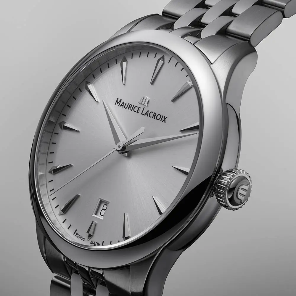 Браслет из нержавеющей стали серебристого цвета с раскладывающейся застёжкой делает модель удобной и стильной. Maurice Lacroix 1975 Quartz 39mm — идеальный выбор для мужчин, ценящих классику, надежность и утончённый дизайн.
