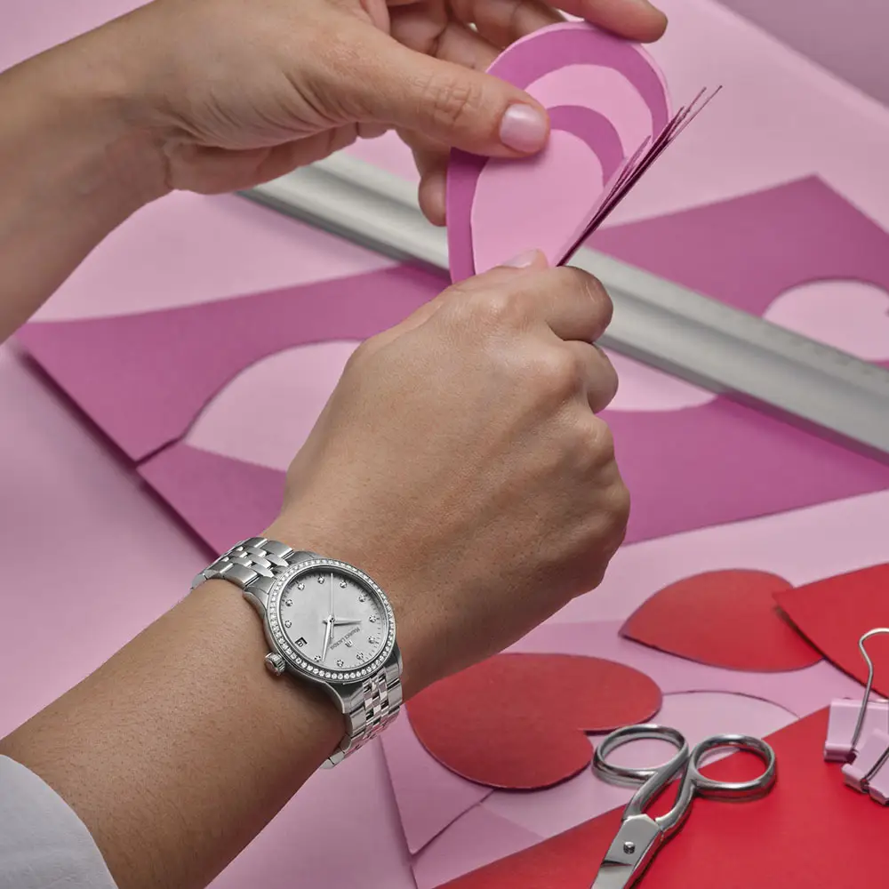 Часы дополнены стальным браслетом с раскладывающейся застёжкой. Благодаря водонепроницаемости 100 м они подходят как для повседневной носки, так и для особых случаев. Коллекция Maurice Lacroix 1975 сочетает элегантность, качество и роскошные детали.