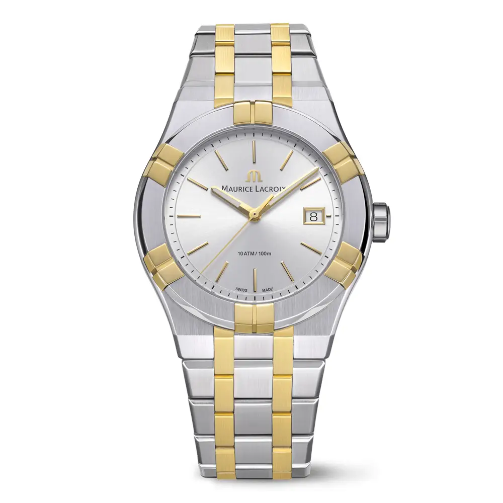 Aikon - флагманская коллекция Maurice Lacroix, воплощающая современную спортивную элегантность с характерным визуальным стилем. Она вдохновлена культовой моделью Calypso 1990-х годов, но переосмыслена в современном виде с акцентом на четкие линии, архитектурный дизайн и интегрированный браслет - одну из главных особенностей коллекции.
