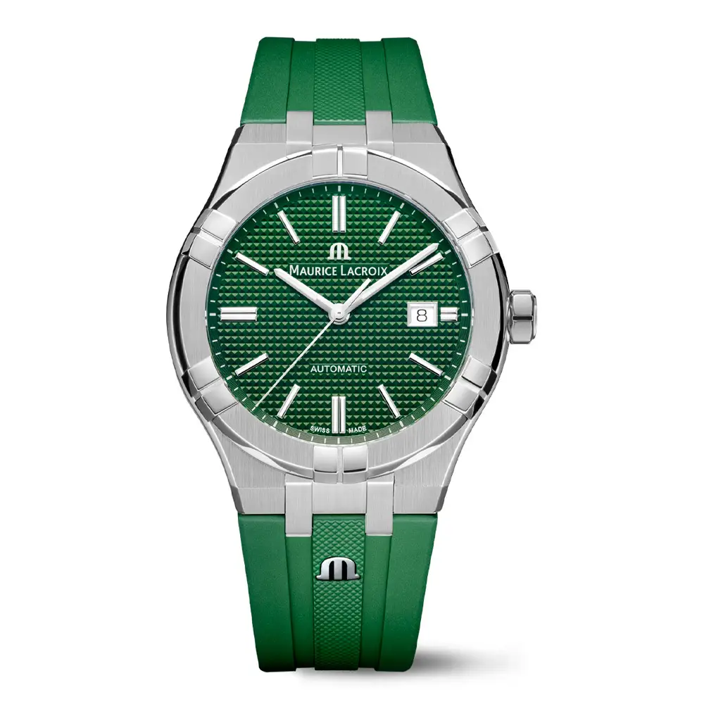 Maurice Lacroix Aikon Automatic 42mm AI6008-SS000-630-5 — это гармоничное сочетание современной элегантности, спортивного характера и швейцарской часовой точности. Яркий зелёный цвет делает эти часы заметным и стильным аксессуаром.