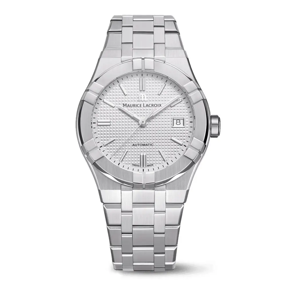 Aikon - флагманская коллекция Maurice Lacroix, воплощающая современную спортивную элегантность с характерным визуальным стилем. Она вдохновлена культовой моделью Calypso 1990-х годов, но переосмыслена в современном виде с акцентом на четкие линии, архитектурный дизайн и интегрированный браслет - одну из главных особенностей коллекции.