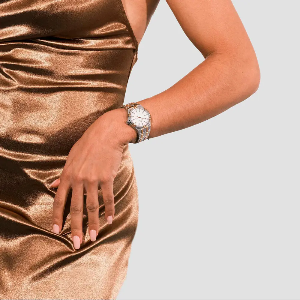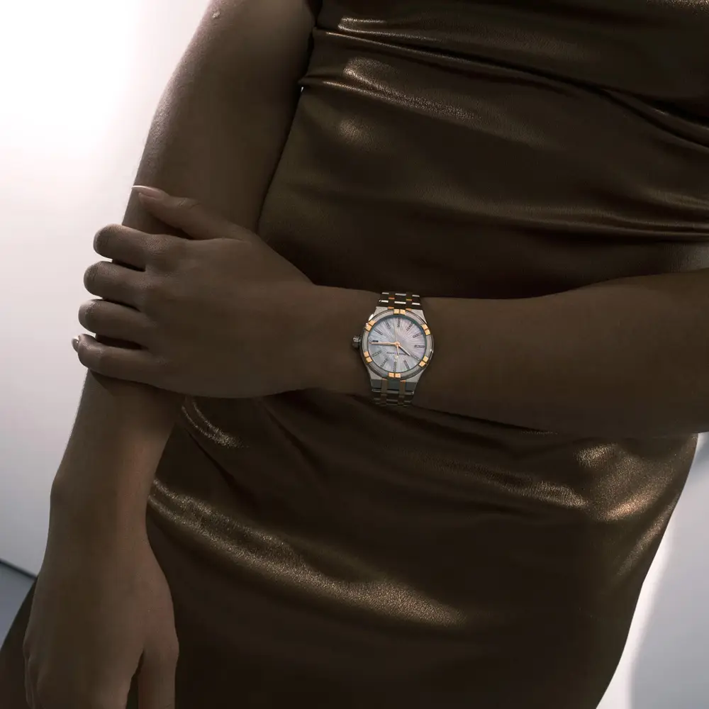 Внутри установлен швейцарский кварцевый механизм Ronda 515, обеспечивающий высокую точность и надёжность без обслуживания. Часы дополняет двухцветный браслет из стали и розового золота с раскладывающейся застёжкой-бабочкой и системой “Easy Change” для быстрой смены ремешка. С водонепроницаемостью до 100 м (10 ATM), Aikon Quartz Date — это выбор женщин, ценящих современную роскошь, функциональность и вечную красоту.