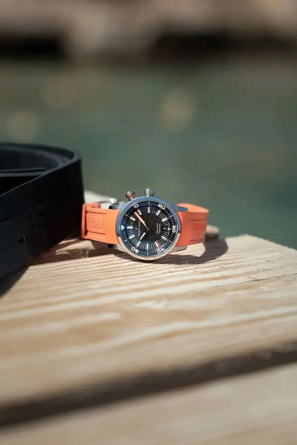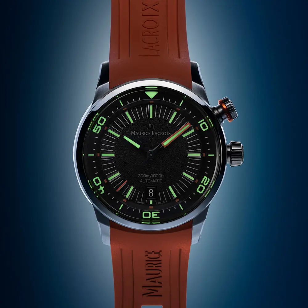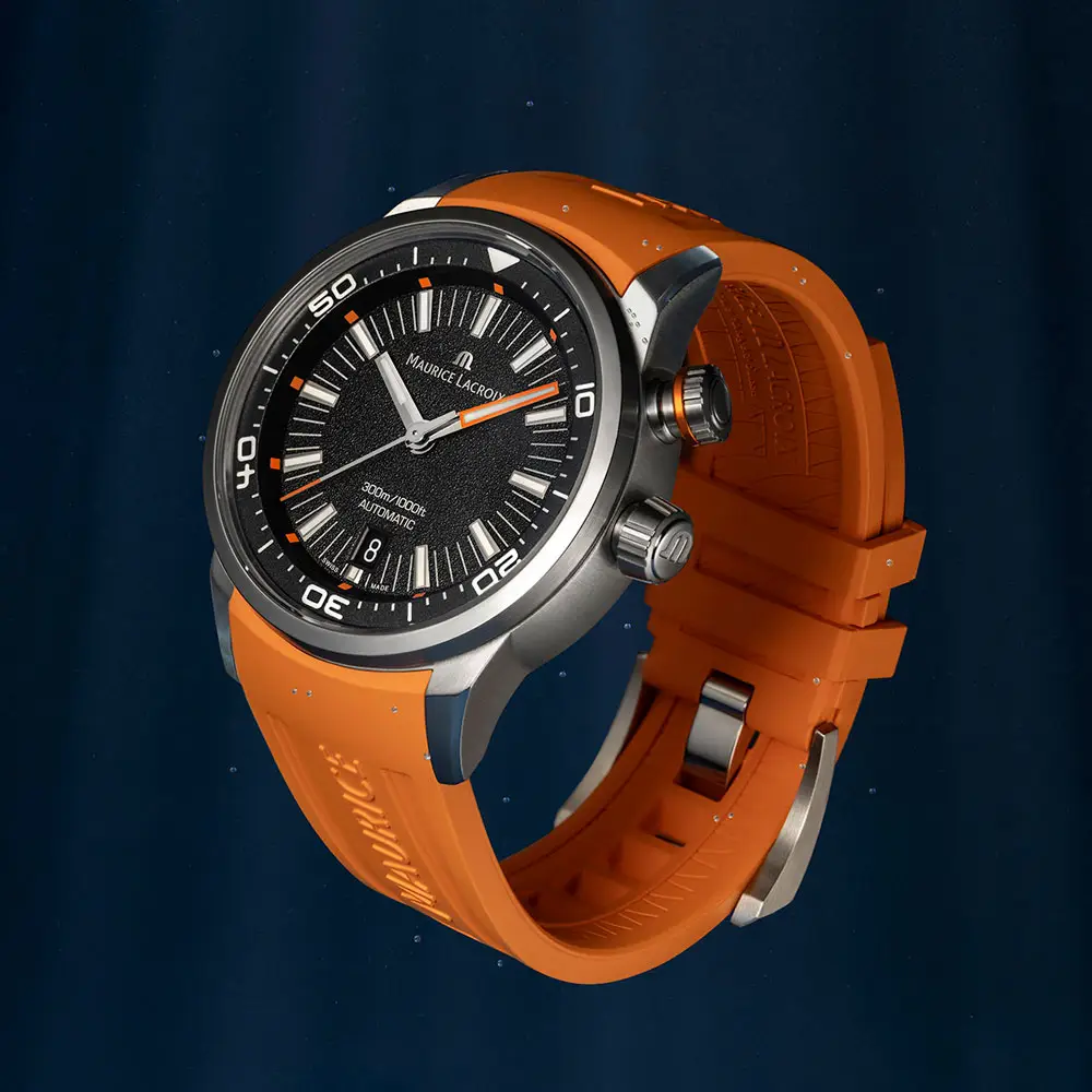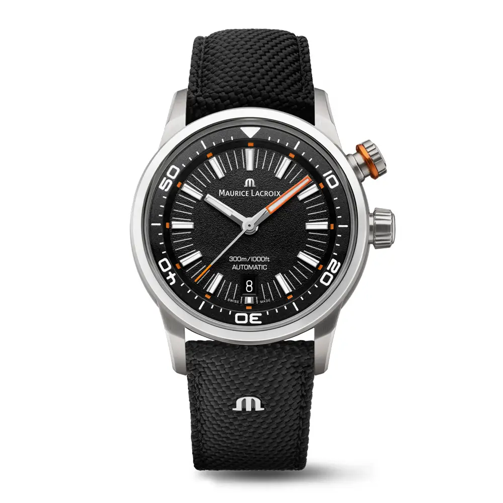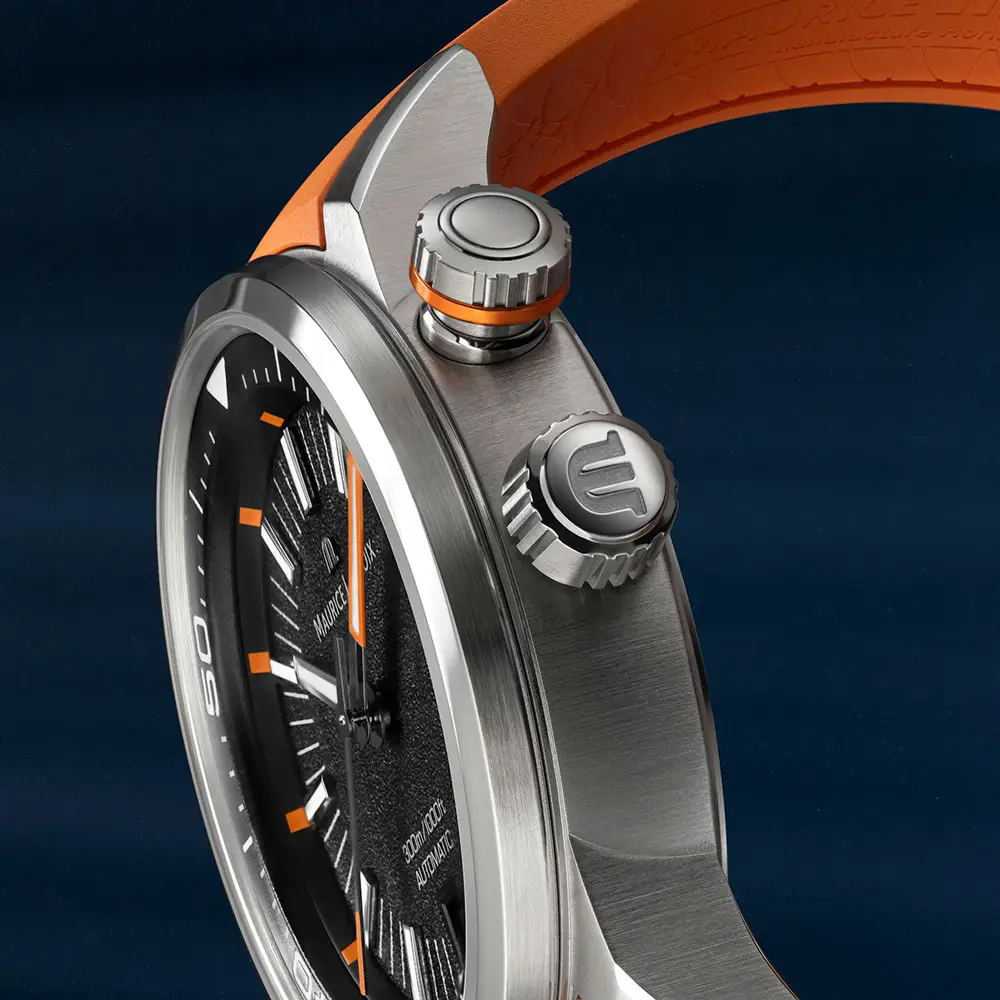 Корпус из нержавеющей стали диаметром 42 мм сочетает полированные и сатинированные поверхности, придавая часам выразительный и современный вид. Чёрный циферблат с метками и стрелками Super-LumiNova обеспечивает отличную читаемость под водой. Сапфировое стекло с двусторонним антибликовым покрытием защищает циферблат, а внутренний вращающийся безель позволяет точно измерять время погружения.