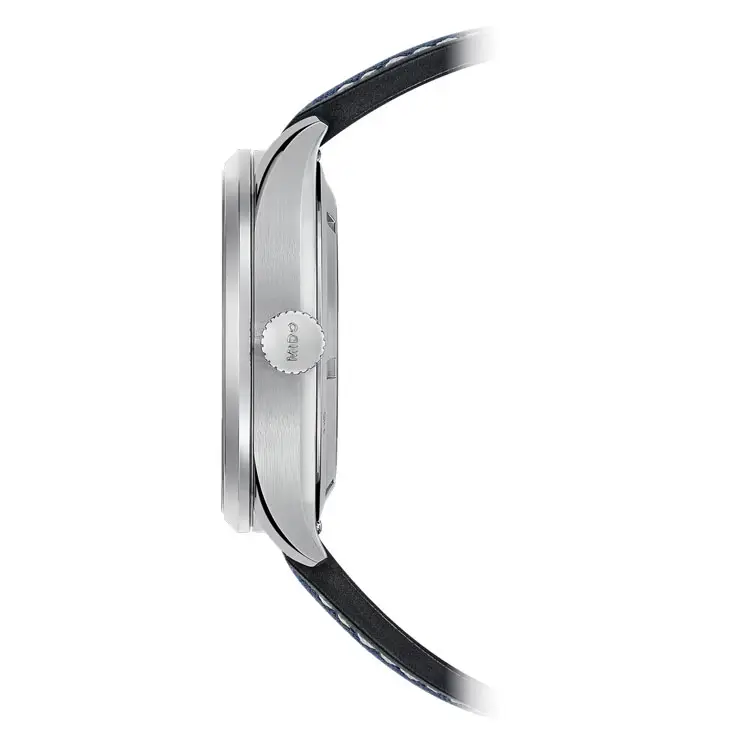 Модель дополнена стильным синим текстильным ремешком с классической пряжкой, который гарантирует комфортное и безопасное крепление на запястье. Благодаря водонепроницаемости 10 ATM (100 метров) часы подходят не только для ежедневного использования, но и для спортивных занятий, включая плавание.
