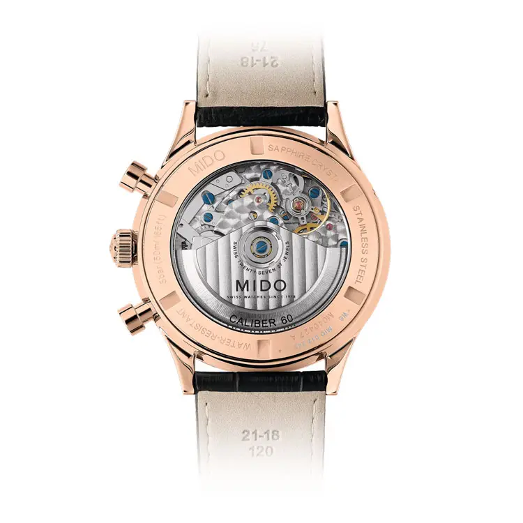 Часы Mido Multifort Patrimony Chronograph — это элегантное сочетание классического стиля, утончённых деталей и швейцарского качества. Круглый корпус диаметром 42 мм выполнен из стали с розовым PVD-покрытием, придающим часам утончённый и роскошный вид. Прочное сапфировое стекло обеспечивает отличную защиту циферблата и читаемость.