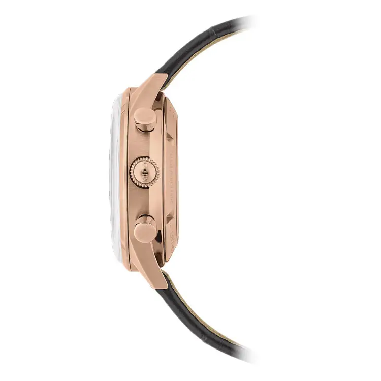 Лаконичный аналоговый циферблат цвета слоновой кости впечатляет чёткой разметкой и лёгким ретро-акцентом. Он дополнен практичной датой и функцией хронографа, что увеличивает функциональность модели.