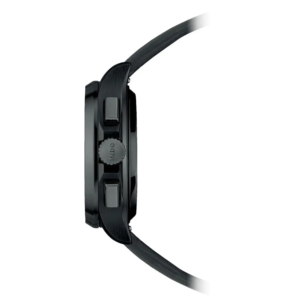 Mido Multifort TV Chronograph M049.527.33.081.00 - это смелый "телевизионный" дизайн в современном черном PVD-покрытии. Корпус размером 41,2 мм × 42 мм и толщиной 14,3 мм сочетает в себе выразительную эстетику и удобство ношения. Сапфировое стекло с двусторонней антибликовой обработкой, прозрачный циферблат и завинчивающаяся заводная головка обеспечивают долговечность, а водонепроницаемость до 100 м делает эту модель надежным партнером на каждый день.
