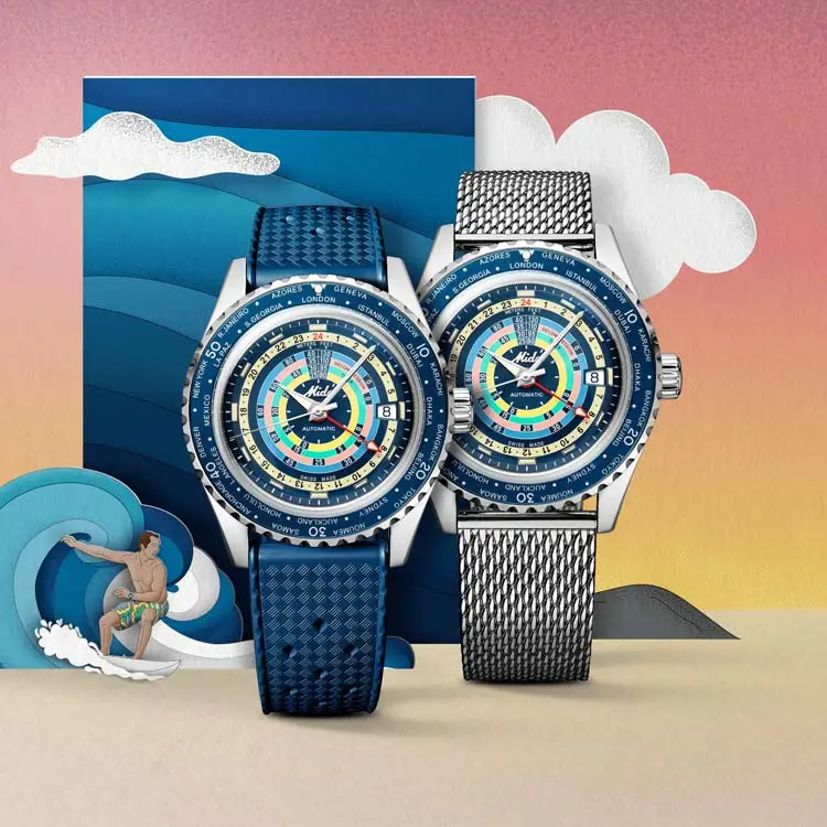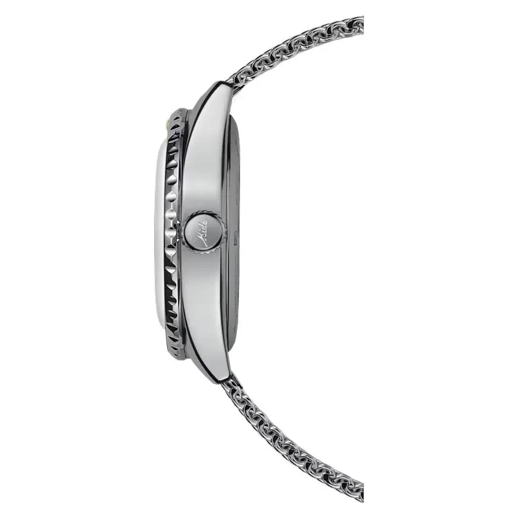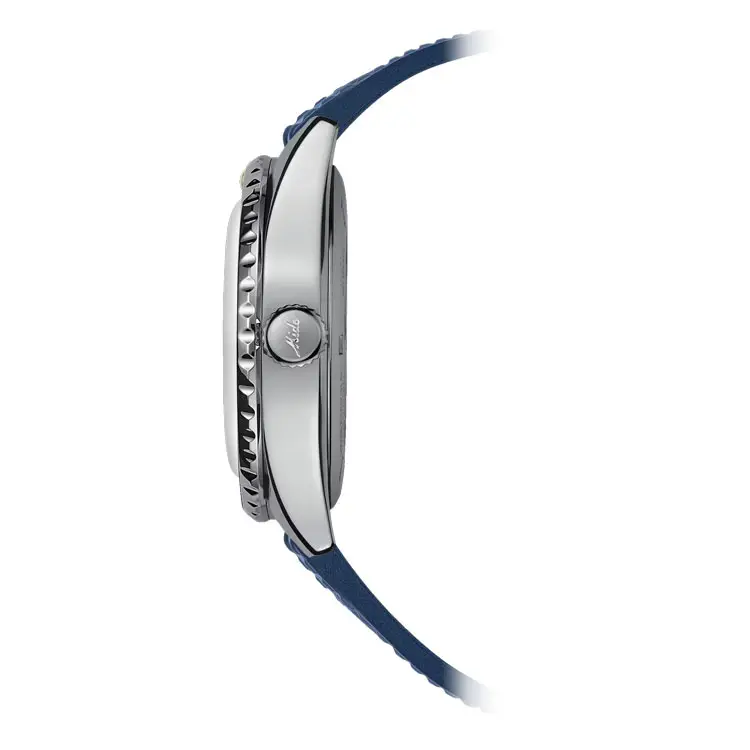 Часы дополнены спортивным синим каучуковым ремешком с классической пряжкой, который гарантирует комфортное и безопасное ношение. Благодаря водонепроницаемости 20 ATM (200 метров) модель подходит как для повседневного использования, так и для плавания и сноркелинга.