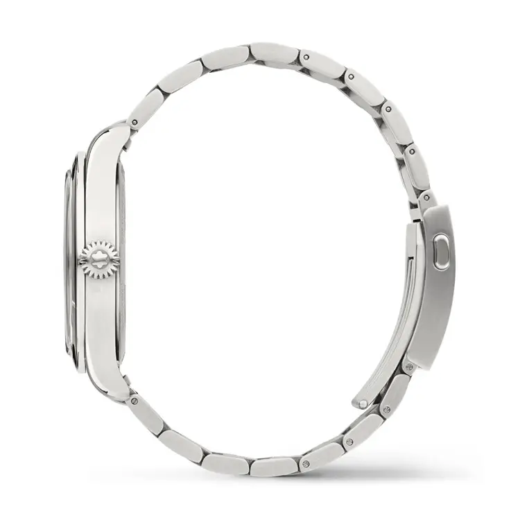 Внутри расположен надежный автоматический механический калибр с запасом хода около 38 часов, работающий на частоте 28 800 пк/ч (4 Гц). Благодаря водонепроницаемости до 100 метров (10 ATM) часы подходят как для повседневной носки, так и для активного отдыха. Элегантный серебристый браслет из нержавеющей стали с раскладывающейся застежкой обеспечивает комфорт и надежность.